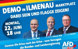 Liebe Mitglieder, Förderer und Freunde im Kreisverband Ilmkreis-Gotha, unsere bereits durchgeplanten Bürgertische müssen diesen Monat nochmals ausfallen. LEIDER! Grund dafür sind die Verschärfungen der sogenannten "Corona-Beschränkungen", also nichts von wegen Ramelows angekündigter "Lockerung", genau das Gegenteil ist der Fall, nämlich: Der Gastwirt muss jetzt verbindlich alle Bürgertischgäste namentlich mit voller Adresse erfassen und diese Liste [...]
