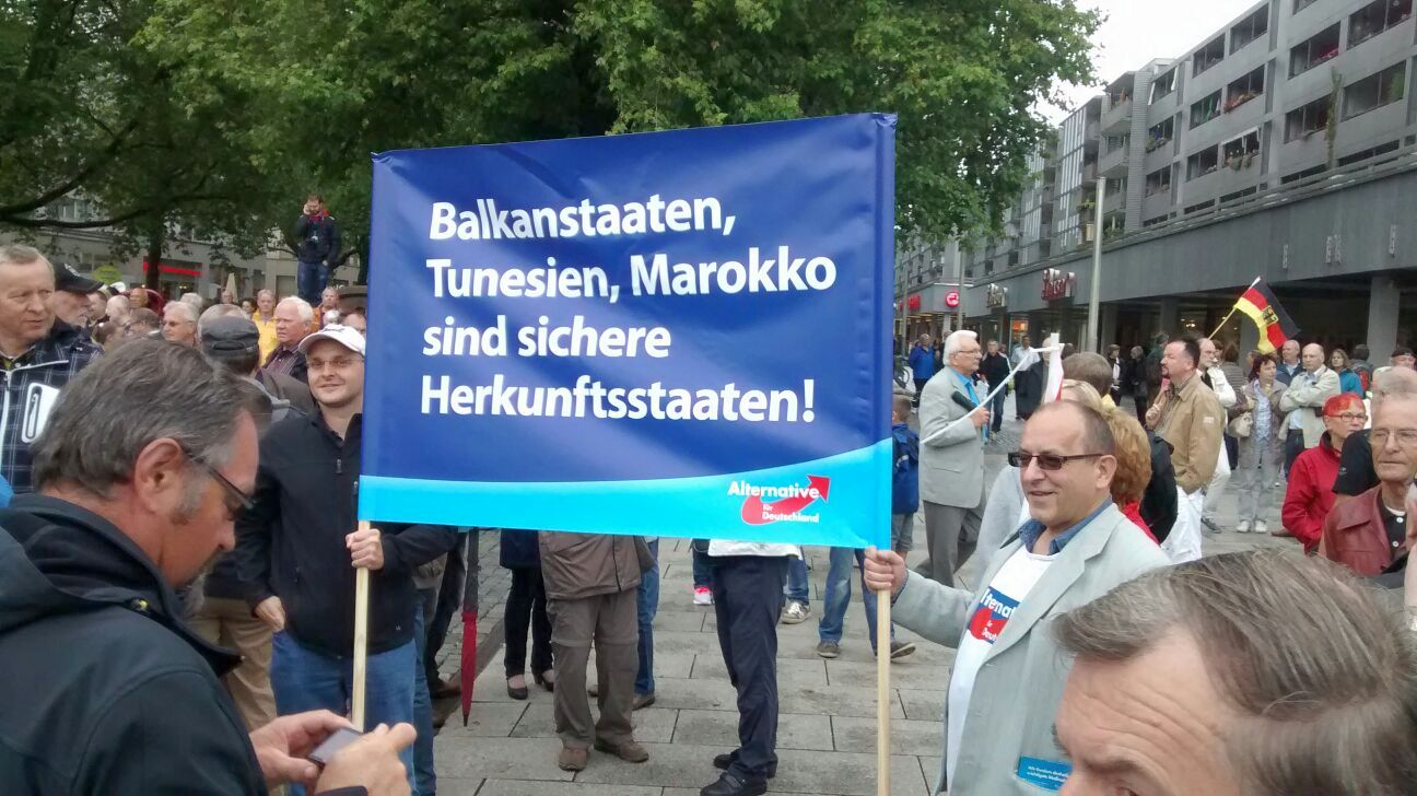 Auf Transparenten, die überwiegend von den sächsischen Parteifreunden bereitgestellt wurden, waren klar und deutlich die Forderungen der AfD an die politisch Verantwortlichen zu lesen, wie die Beendigung des Asylmissbrauches, die Einhaltung geltender Gesetze in der Asyl- und Zuwanderungspolitik und die Erweiterung der sicheren Herkunftsländer. In ihrer Rede ging die Bundesvorsitzende der AfD und Vorsitzende der AfD-Landtagsfraktion in Sachsen Dr. Frauke Petry konkret auf diese Forderungen und die Arbeit der AfD ein.