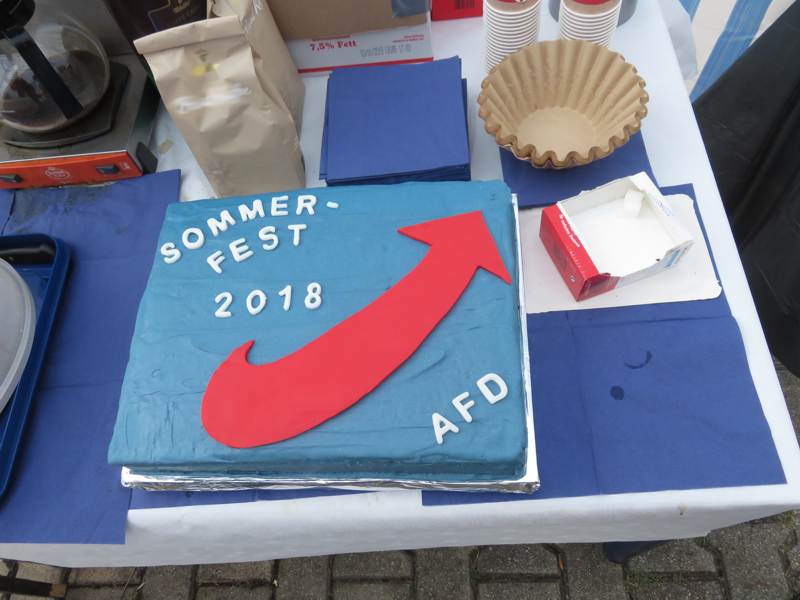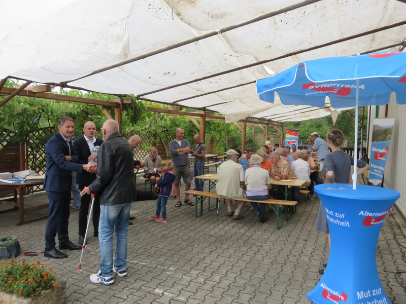 Zu Gast waren auch unsere Landessprecher Björn Höcke und Stefan Möller, die die Gelegenheit nutzten, auch mal Abseits der Politik mit den Gästen zu plaudern und sich ihren Fragen zu stellen. Für das leibliche Wohl war natürlich auch gesorgt. Der Rost brannte und am Kuchenbuffet konnte man sich nach Herzenslust bedienen. Auch die Kinder genossen den Tag und konnten sich die Zeit auf der Hüpfburg, beim Reiten oder Boule spielen vertreiben.