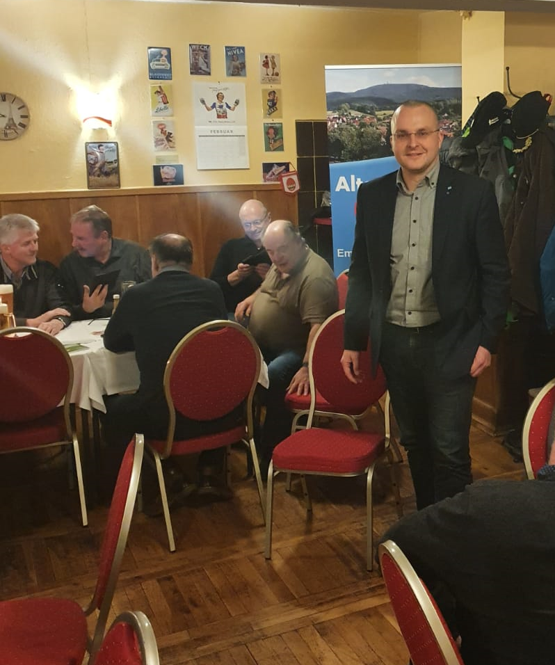 Die Abwahl von Bodo Ramelow am 5.2.2020 und die politischen Auswirkungen in Land und Bund beschäftigte unsere Gäste im Anschluss, als Olaf Kießling MdL in Arnstadt und Birger Gröning, AfD MdL in Winterstein zu den Ereignissen in Erfurt referierten. Marcus Bühl, AfD MdB stellte den chronologischen Ablauf der Entwicklungen in Berlin erst in Arnstadt mit Olaf Kießling und später nach schnellem Wechsel nach Winterstein mit Birger Gröning dar.