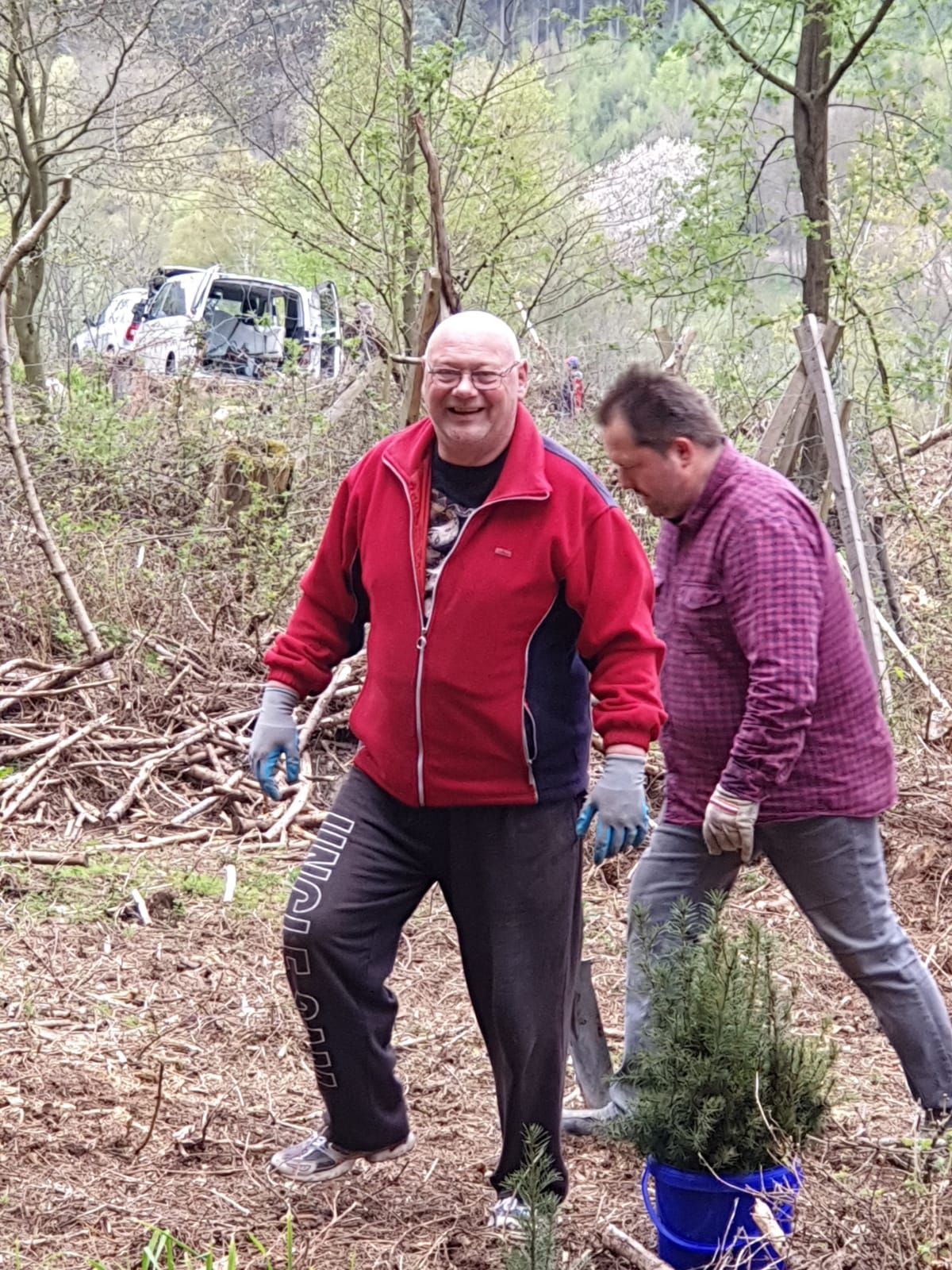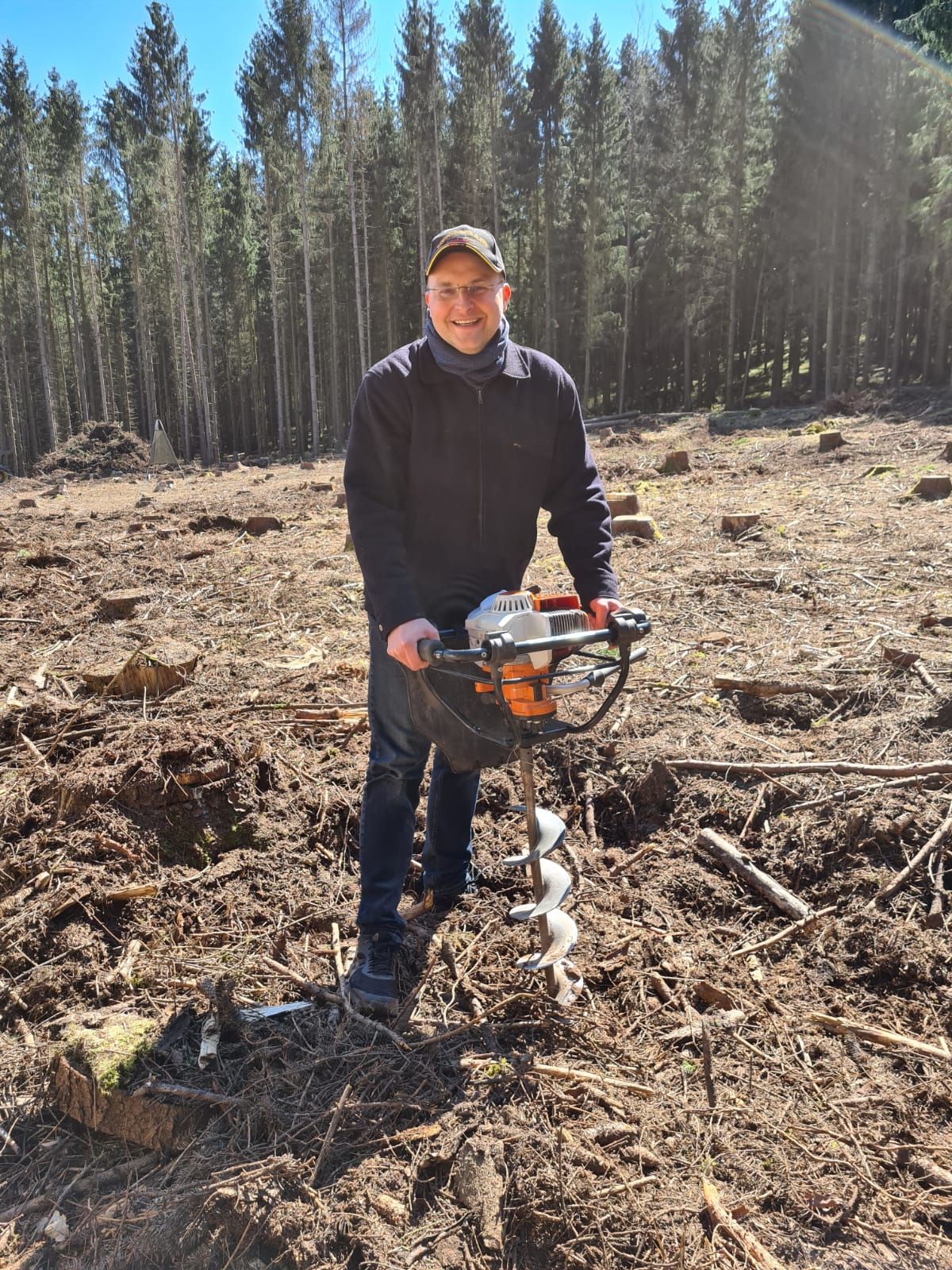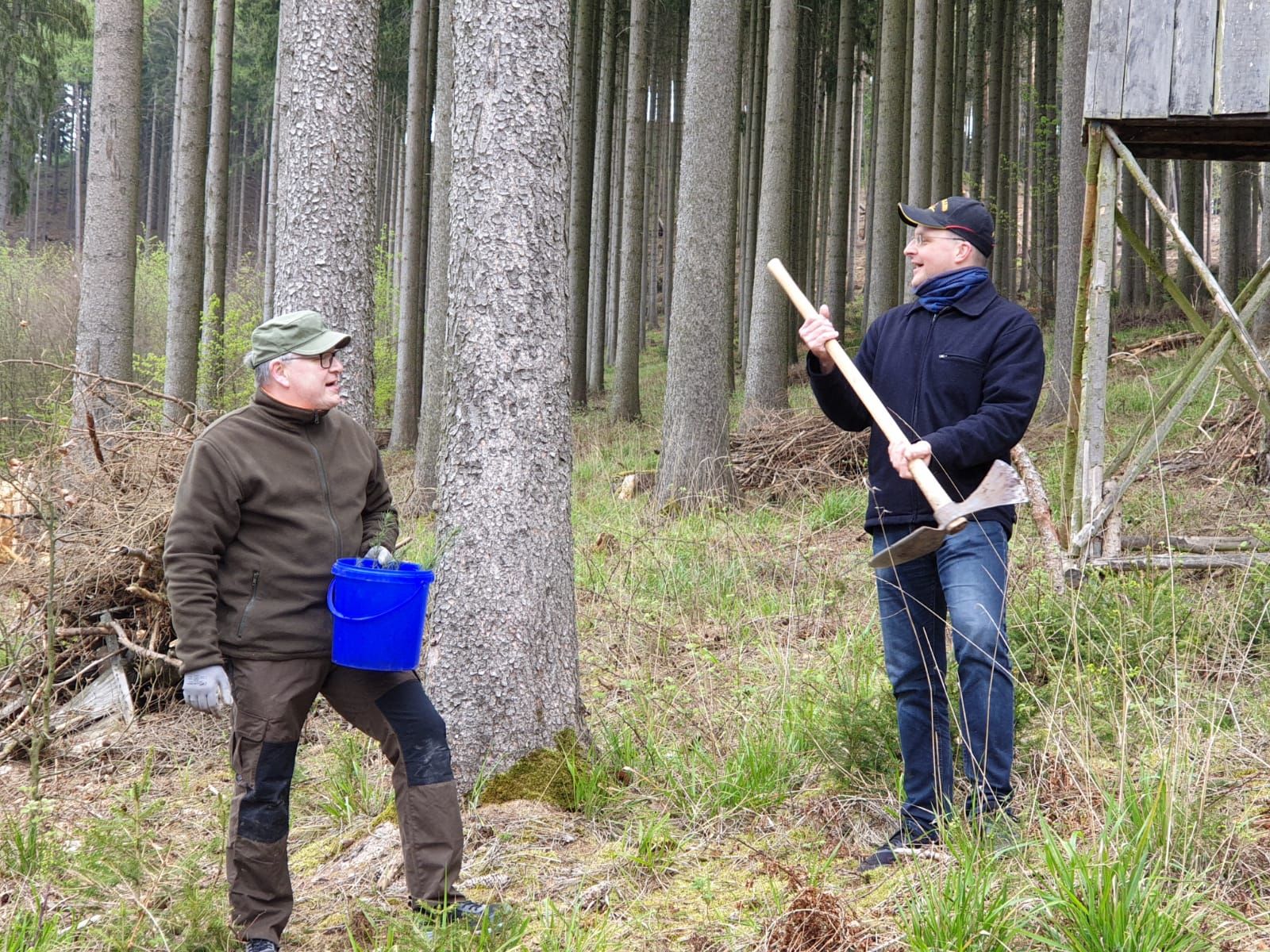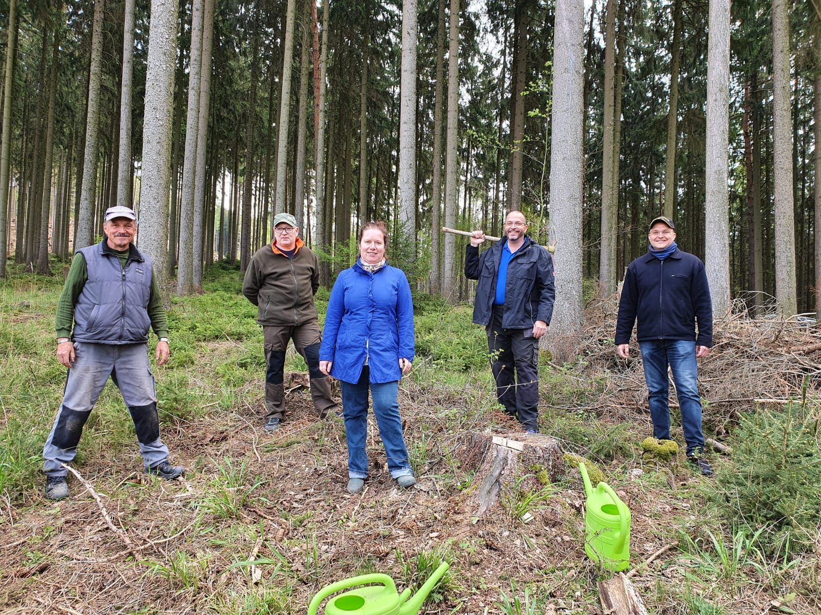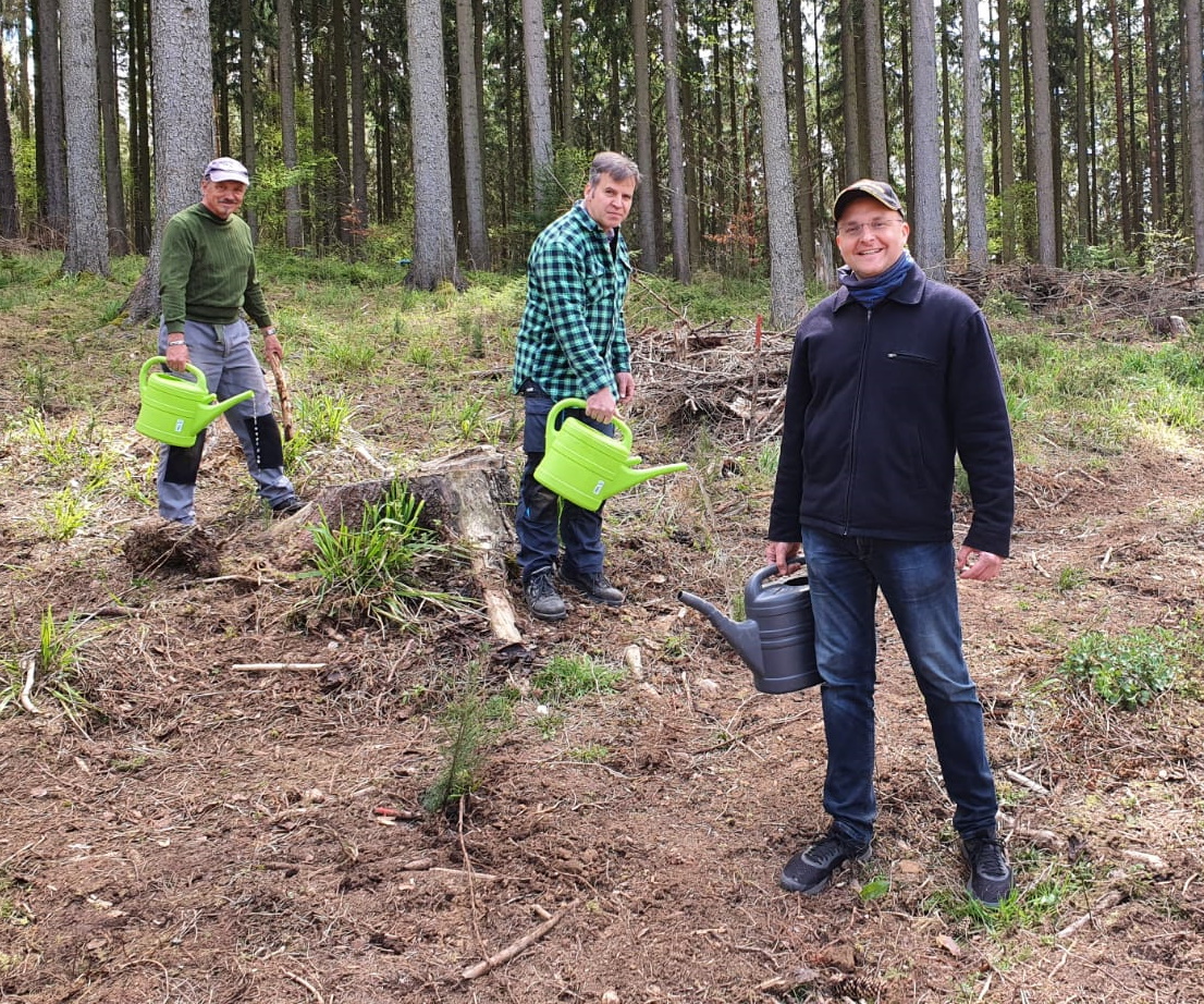 Die Bilanz: An 4 Tagen haben wir in der vergangenen Woche in 2 Schonungen im „Lauchaer Holz“ bei Waltershausen insgesamt 1350 neue Bäumchen gepflanzt. Davon 350 Buchen, 300 Eichen, 300 Ahornbäume sowie 400 Douglasien. Am vergangenen Montag pflanzten wir gemeinsam mit Landessprecher Björn Höcke, der selbst tatkräftig zur Hacke griff.
