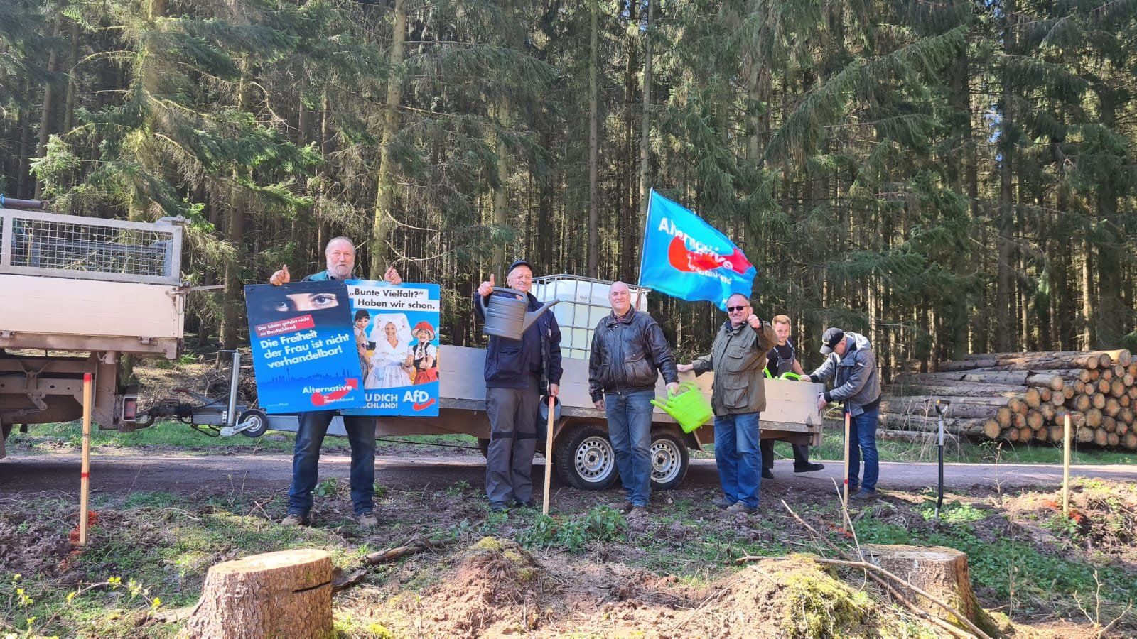 „Mit dieser Aktion hat sich mal wieder gezeigt, wie AfD-Mitglieder in kurzer Zeit zusammenstehen und helfen, wo Hilfe gebraucht wird. Vielen Dank an Birger und Marcus, die für alle Helfer die Versorgung mit warmen und kalten Speisen sowie Getränken übernommen haben – ein leerer Bauch arbeitet nicht gern! Jetzt haben wir nur noch einen Wunsch: Es soll bitte regnen, damit unsere Bäumchen ohne tägliche Gießkannenhilfe wachsen und gedeihen!“