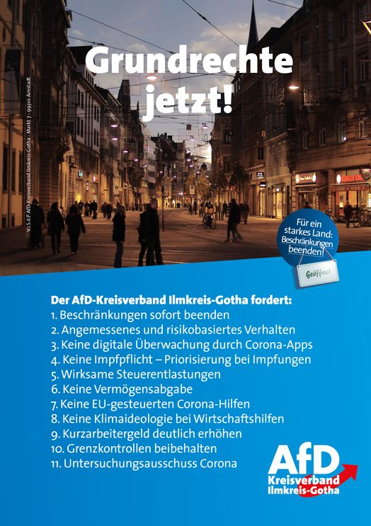 Sie möchten mitmachen? Schicken Sie uns eine E-Mail an: vorstand@afd-ilmkreis-gotha.de
