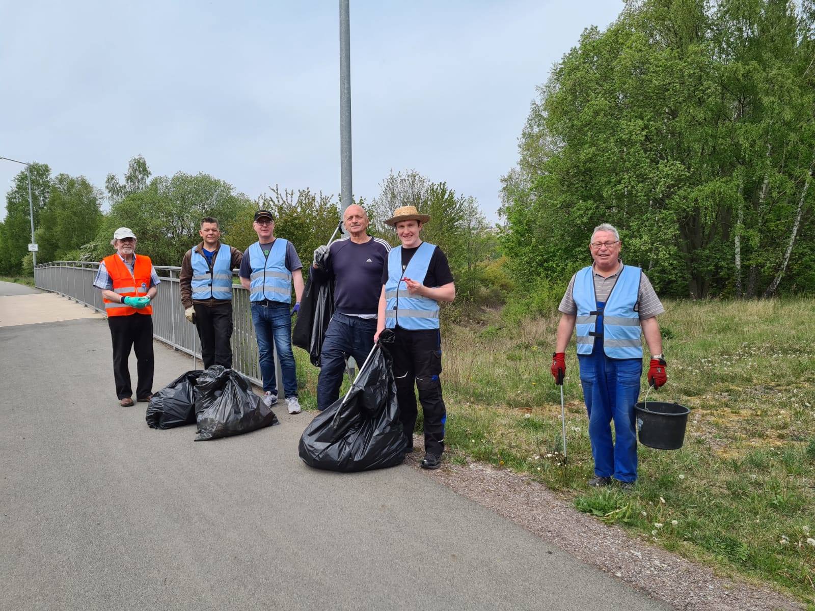 Müllsäcke werden gestellt, Handschuhe und passende Kleidung hat jeder Teilnehmer dabei.
