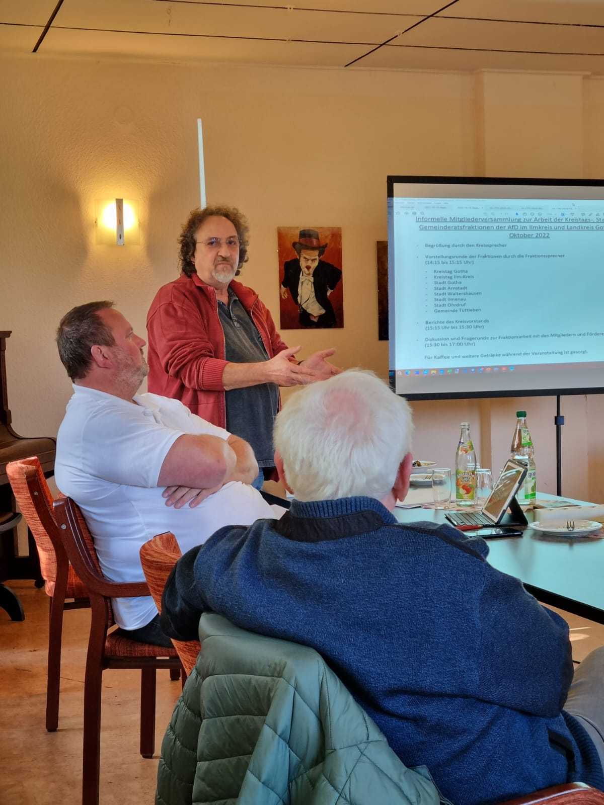 Am Sonnabend haben wir unsere Klausur der Kreistags-, Stadtrats- und Gemeinderatsfraktionen der AfD im Ilmkreis und Landkreis Gotha abgehalten. Am Vormittag haben sich die von den Fraktionen abgesandten Fraktionsmitglieder über ihre Arbeit ausgetauscht, dabei wurde unter anderem über Anträge und die Erfahrungen in den Stadträten und Kreistagen gesprochen. Neben dem Austausch gab es zwei Fachvorträge zum Umgang mit dem Cloud-System zum Informationsaustausch durch Dr. Jens Dietrich und einen Vortrag von Kommunalexperte Stephan Müller von der Vereinigung VKKT (Verein konservativer Kommunalpolitiker in Thüringen).