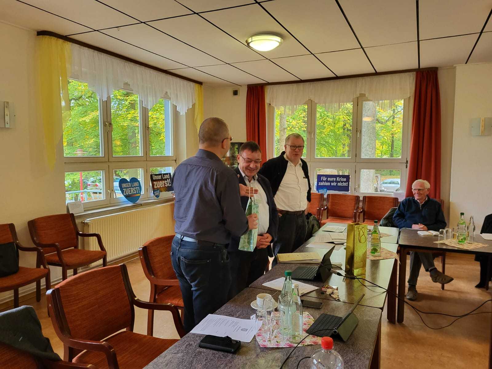 Im Anschluss fand am Nachmittag ein Mitgliedertreffen statt, bei dem sich die Mitglieder unseres Kreisverbands über die Arbeit der Fraktionen informieren konnten, Mitglieder des Kreisvorstands berichteten dabei über die Aktivitäten im Kreisverband und über die Mitgliederentwicklung. Informationen aus dem Landtag gab es von unserem Landtagsabgeordneten Olaf Kießling und Informationen aus dem Bundestag von unserem Bundestagsabgeordneten Marcus Bühl.