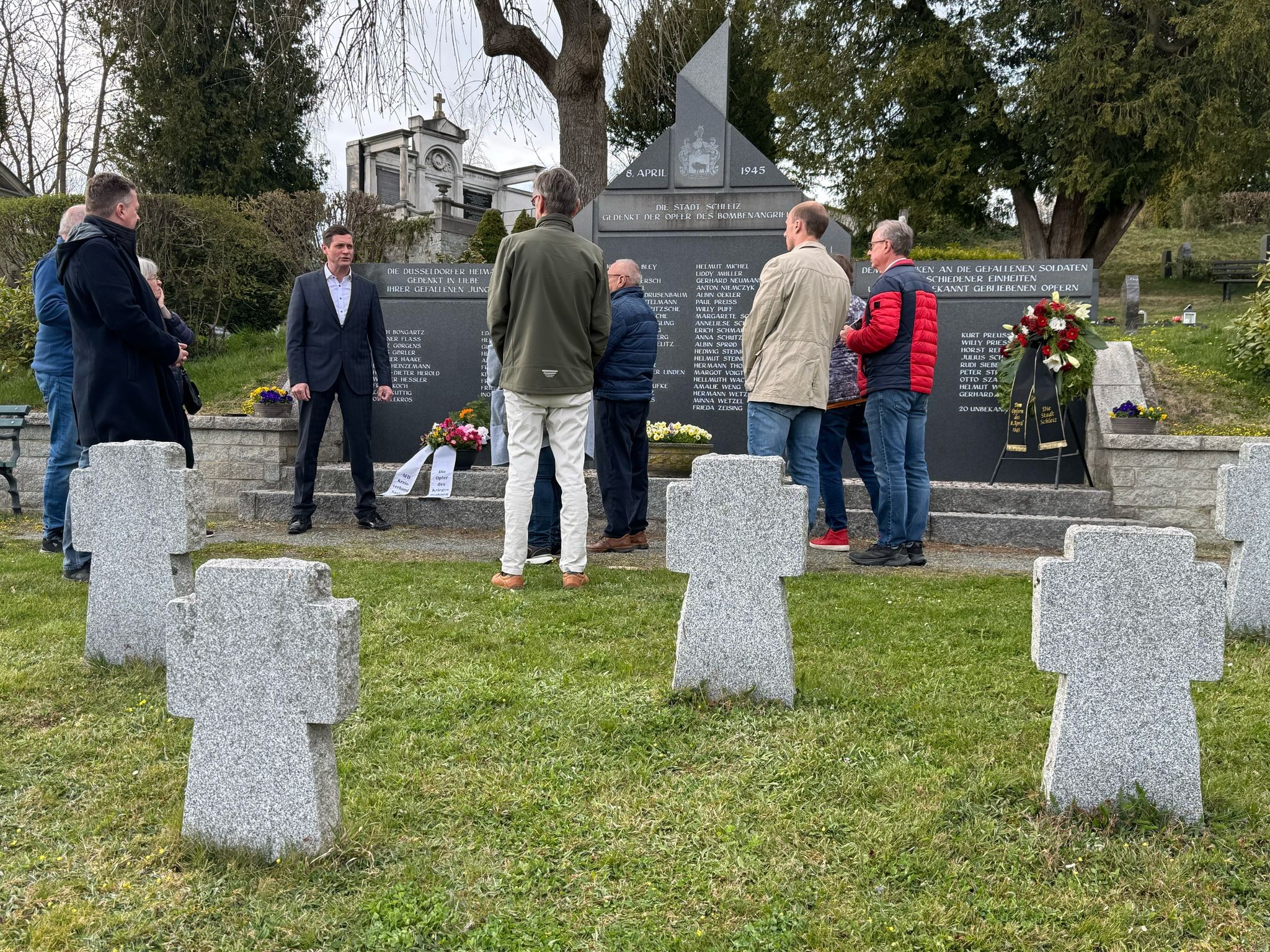 Am 8. April 1945 bombardierte die US-Air Force mit 25 Kampfflugzeugen die Stadt Schleiz. In nur 10 Minuten fielen etwa 500 Bomben auf die Stadt nieder und töteten über 200 Menschen. Die Turmruinen des Stadtschlosses zeugen heute noch von diesem schrecklichen Ereignis. Mit einer Schweigeminute erinnern wir uns der vielen Toten und dem Leid der Überlebenden des Krieges.