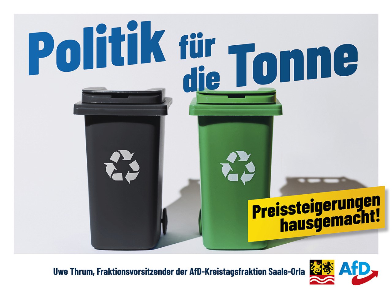 Nachdem die Müllgebühren im Gebiet des Zweckverbandes Abfallwirtschaft Saale-Orla (Zaso) um über 10 Prozent steigen sollen, muss mit den hausgemachten Preissteigerungen endlich Schluss sein. Die CO2-Bepreisung im Rahmen der sogenannten „Klimapolitik“, die Energiekosten aufgrund einer fehlgeleiteten Energiewende und die gestiegenen Lohnkosten ausgelöst durch eine selbstverursachte Inflation und der Massenzuwanderung ins Sozialsystem, sind die Hauptpreistreiber. Dem Steuerzahler ist es darüberhinaus nicht vermittelbar, dass für die Geschäftsleiterin des Zweckverbandes nun auch noch eine hochdotierte Beamtenstelle geschaffen werden soll. Milliardenschwere Pensionslasten gefährden zunehmend die öffentlichen Haushalte. Wenn nun außerhalb der hoheitlichen Kernbereiche neue zusätzliche Beamtenstellen hinzukommen, dann ist das den Bürgern nicht mehr vermittelbar. Um unsere Finanzhaushalte wieder auf gesunde Füße zu stellen, muss diese Selbstbedienungsmentalität ein Ende haben. Wir schlagen vor, dass die Stellenbewertung des Kommunalen Arbeitgeberverbandes in dieser Angelegenheit vor Beschlussfassung abgewartet wird und gegebenenfalls die derzeitige Geschäftsleiterin ihre Arbeit als Beamtin im Umweltamt des Landratsamtes Saale-Orla-Kreis wieder aufnimmt und die Stelle der Geschäftsleitung der Abfallwirtschaft neu ausgeschrieben wird.