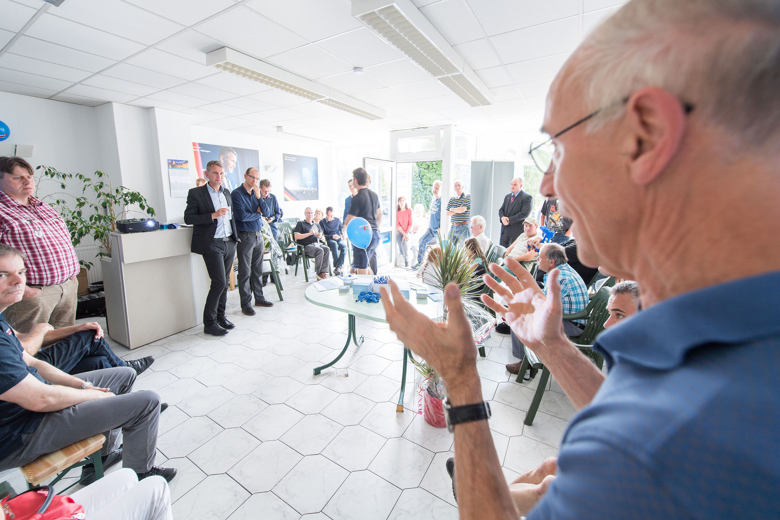 Neben zahlreichen Besuchern ließen es sich die beiden Landessprecher der AfD Thüringen Björn Höcke und Stefan Möller nicht nehmen, bei der Eröffnung dabei zu sein und ihre guten Wünsche für eine erfolgreiche Arbeit zu überbringen. Die Besucher nutzten die Gelegenheit, ihre Fragen von den beiden AfD-Landespolitikern aus erster Hand beantworten zu lassen.