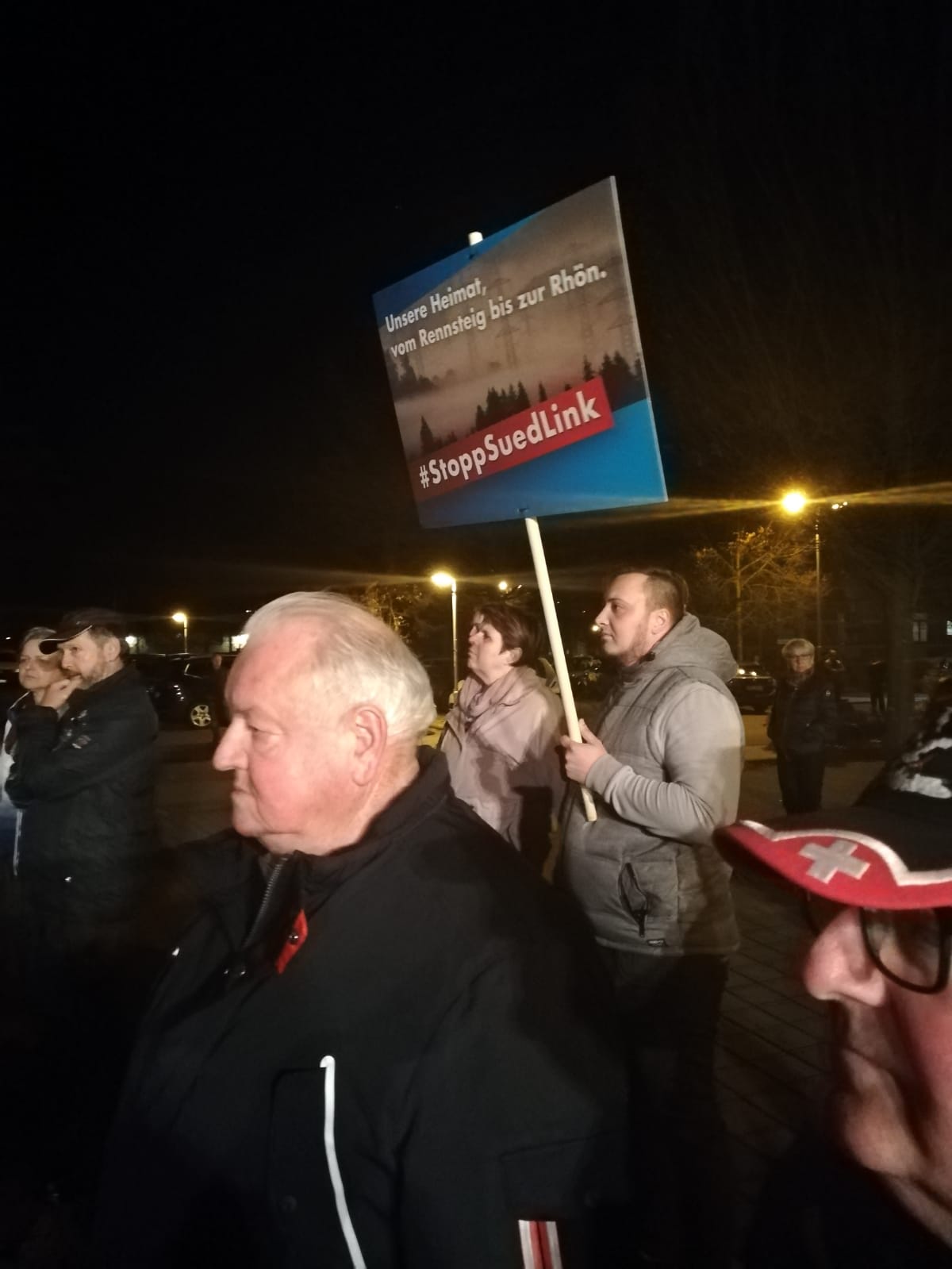 Nach mehreren verwirrenden Informationen über den Zeitplan des Abends traf Minister Peter Altmaier mit Verspätung in der Mehrzweckhalle in Schmalkalden ein. Er wurde von etwa 200 Gegnern der geplanten Stromtrasse teilweise lautstark mit Pfiffen und Buh-Rufen empfangen.