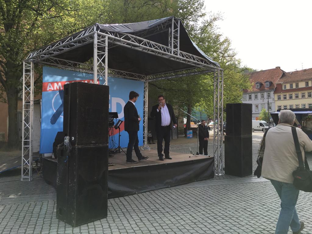 Bei strahlendem Sonnenschein fanden sich am 2. Mai zahlreiche Eisenacher auf dem Marktplatz der Wartburgstadt zum „Kleinen Familienfest“ ein, zu dem die AfD Thüringen eingeladen hatte.