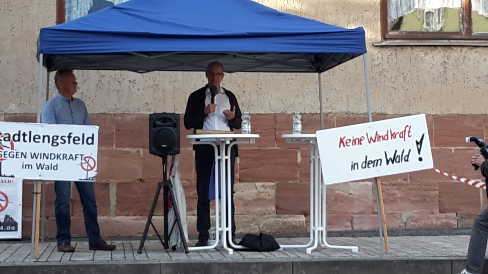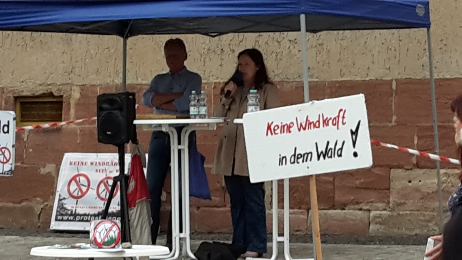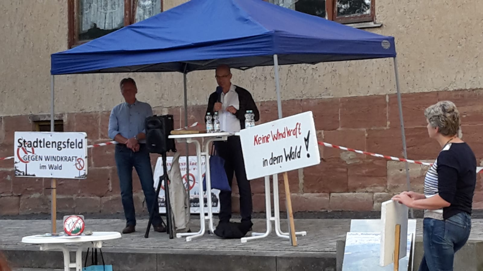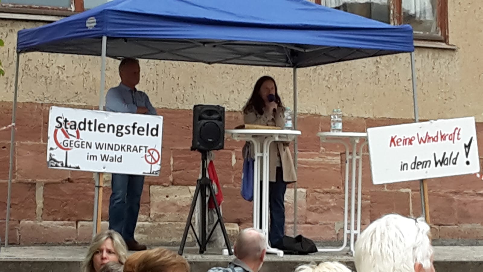 Entschlossen wehrt sich die Bürgerinitiative gegen Windkraft im Wald in Stadtlengsfeld gegen den Bau von Windkraftanlagen im dortigen Waldgebiet, dem sogenannten Vorranggebiet W4. Sie bekommt dabei immer mehr Unterstützung von Bürgern aus der Region, aber auch von Politikern, die sich den Schutz der Natur vor deren Zerstörung durch immer mehr Windräder zum Ziel gemacht haben. Als konsequent überparteilich lässt die Bürgerinitiative auf ihren Kundgebungen alle Parteien zu Wort kommen. So waren gestern die Landtagsabgeordneten der AfD Nadine Hoffmann und Stefan Möller der Einladung gefolgt.