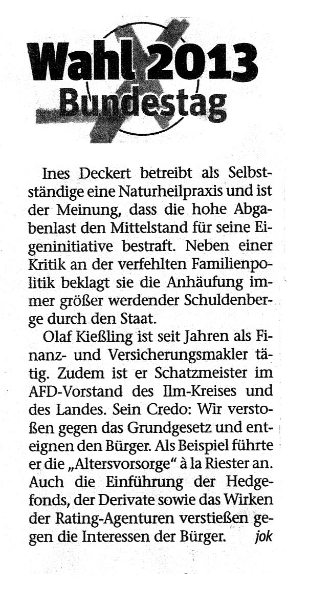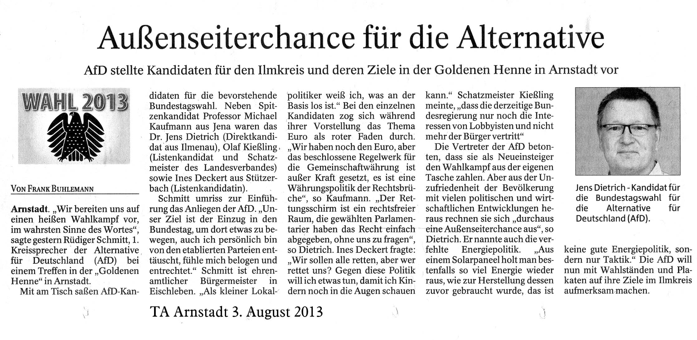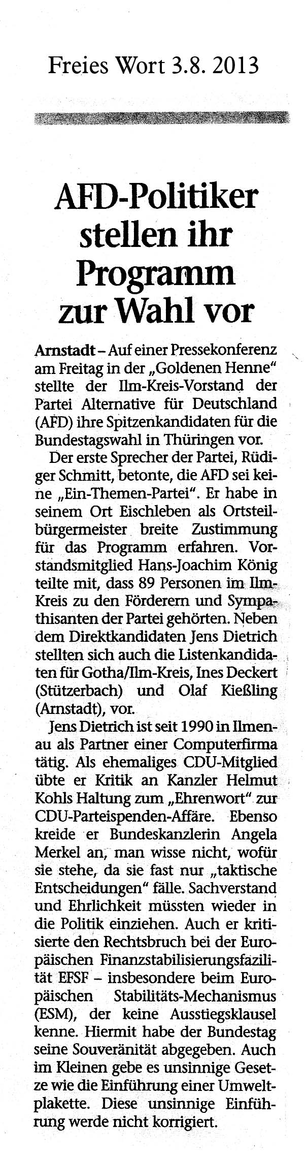 Pressespiegel zur Pressekonferenz der AfD Ilmkreis-Gotha vom 02.08.2013