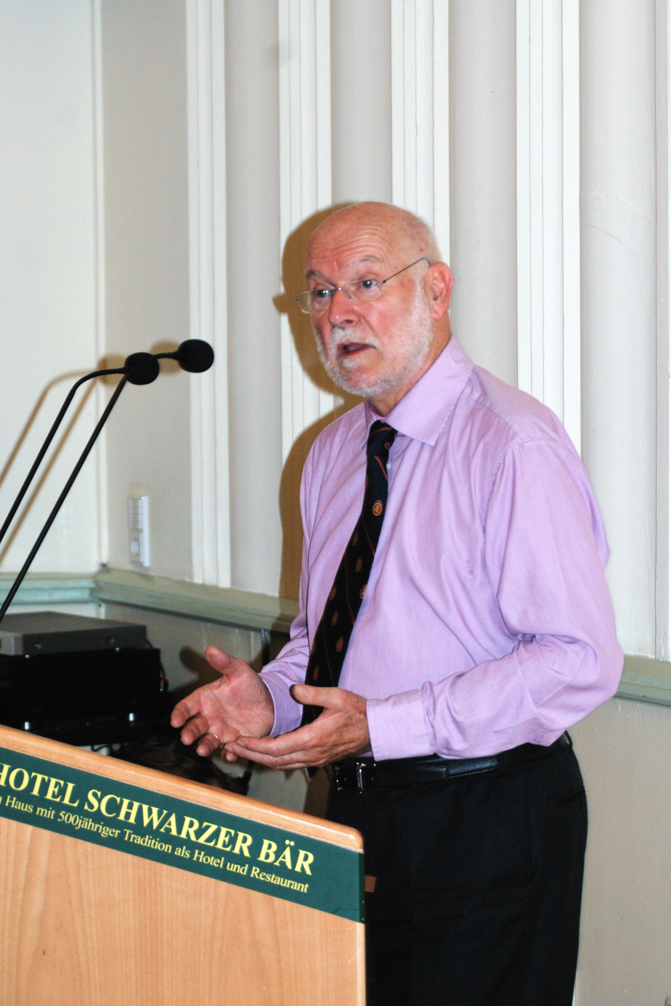 Der Spiegelsaal im Hotel „Schwarzer Bär“, der ca. 130 Sitzplätze bietet, war weit überfüllt, so dass viele der über 200 Zuhörer stehend oder auf dem Boden sitzend den Ausführungen von Prof. Starbatty folgten. Der mitreißende Redner erläuterte wortmächtig und bildreich die Hintergründe und Wirrungen der Einführung des Euro und der Euro-Rettungspolitik. Den Beginn der Eurorettung durch die Regierungschefs in bis heute nicht protokollierten Sitzungen am Wochenende vom 7. bis 10. Mai 2010 bezeichnete Starbatty als „Putsch der Regierungs- und Staatschefs gegen die eigene Bevölkerung“. Seitdem wird das Ziel der Erhaltung des Euro-Währungsraumes über Demokratie, Vertragstreue und Verlässlichkeit in der Politik gestellt. In seinem Vortrag und in der anschließenden Fragerunde legte Prof. Starbatty dar, dass die Rettungsmaßnahmen weder Deutschland noch den in Schwierigkeiten geratenen Völkern nützen. Nur durch eine grundlegende Neuordnung des Euro-Währungsraumes, wie sie von der Partei Alternative für Deutschland gefordert wird, können weitere schwere Verwerfungen und eine Schuldenunion abgewendet werden.
