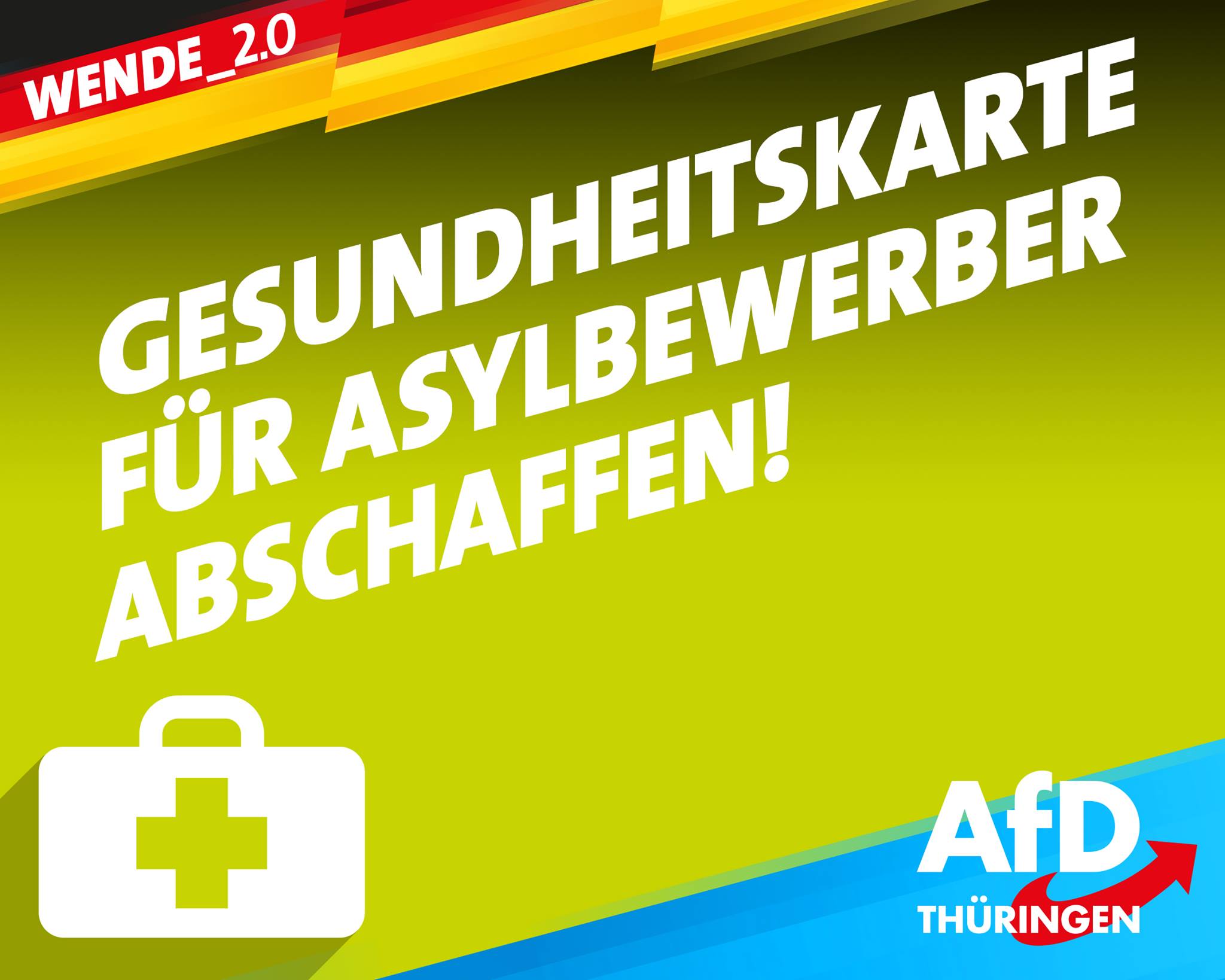 Durch die Gesundheitskarte für Asylbewerber wird die Versichertengemeinschaft über Gebühr belastet. Die Gesundheitskarte für Asylbewerber wollen wir daher einstellen.