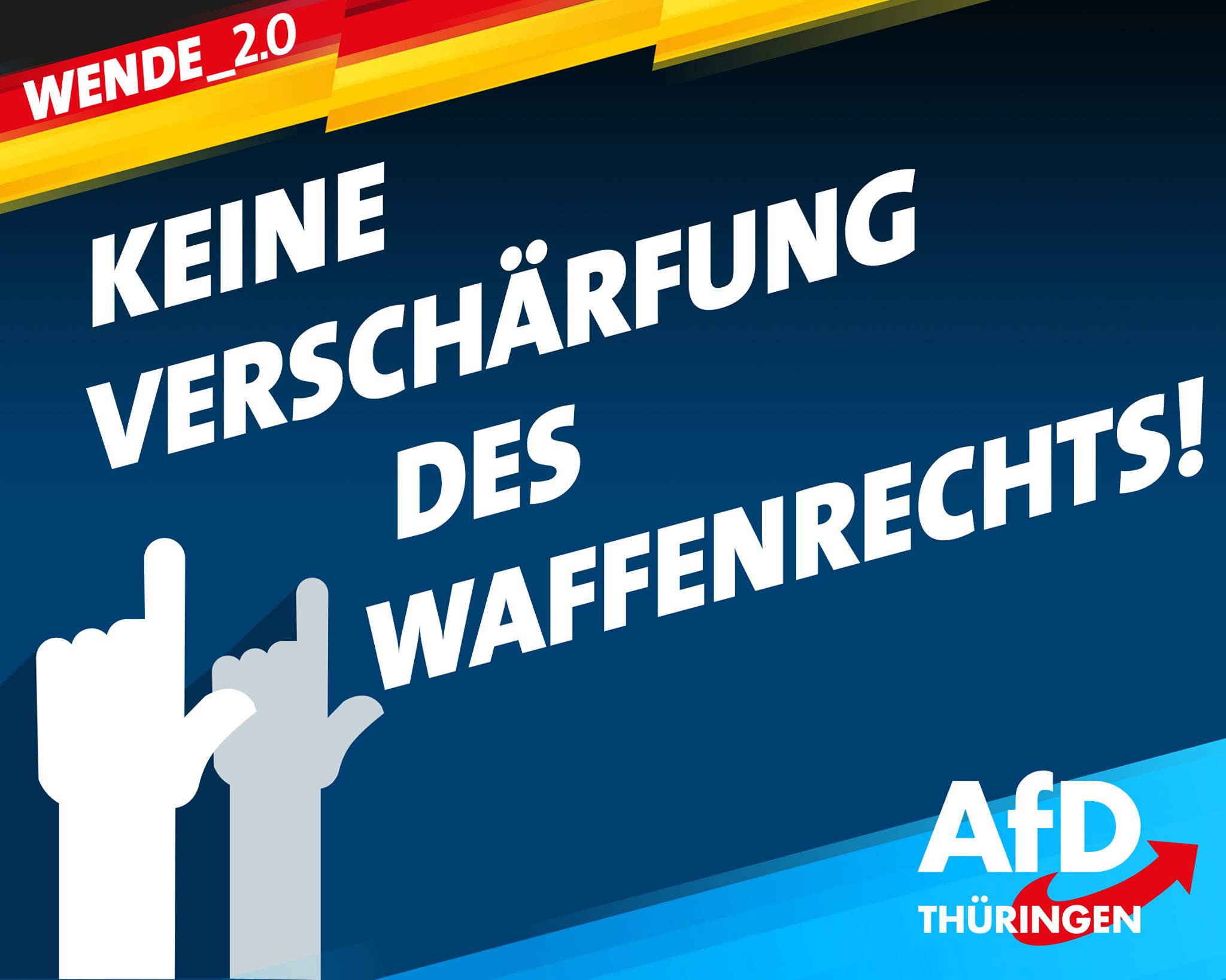 Die behördliche Gängelung von Waffensammlern und Sicherheitsfirmen lehnen wir ab. Dem Ansinnen, Antragsteller einer waffenrechtlichen Erlaubnis bereits bei der Beantragung und verdachtsunabhängig durch den Verfassungsschutz überprüfen zu lassen, erteilen wir eine Absage. Einer Verschärfung des Waffenrechts durch die Hintertür der Europäischen Union (EU-Feuerwaffenrichtlinie) werden wir uns entgegenstellen.
