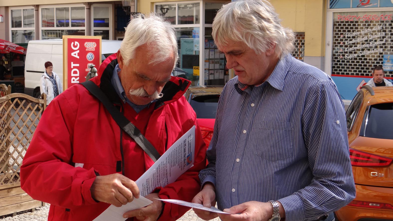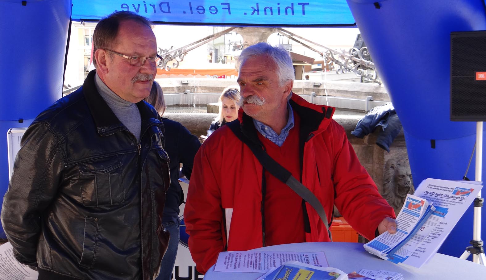 Am 28. April 2013 nutzten die Vorstandsmitglieder der AfD-Ilmkreis, Rüdiger Schmitt, Günter Catterfeld (im Bild) und Hans-Joachim König, die Gelegenheit, mit zahlreichen Ausstellern, Geschäftsleuten und Besuchern ins Gespräch zu kommen.Fazit: Bis auf wenige Ausnahmen zeigten sich die Bürger aufgeschlossen und interessiert. Die schnell angefertigten Flyer und Infozettel waren in kürzester Zeit vergeben.