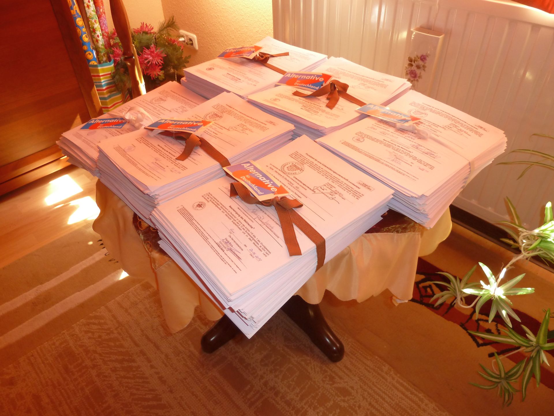 Wir möchten uns an dieser Stelle nochmals bei Euch/Ihnen allen, die uns unterstützt haben, ob mit einer Unterschrift, als Unterschriftensammler, oder beides in einem, ganz herzlich bedanken! Wenn Sie uns weiter so unterstützen wie in den letzten Wochen kann am Erfolg der Alternative für Deutschland in Thüringen kein Weg vorbeiführen!