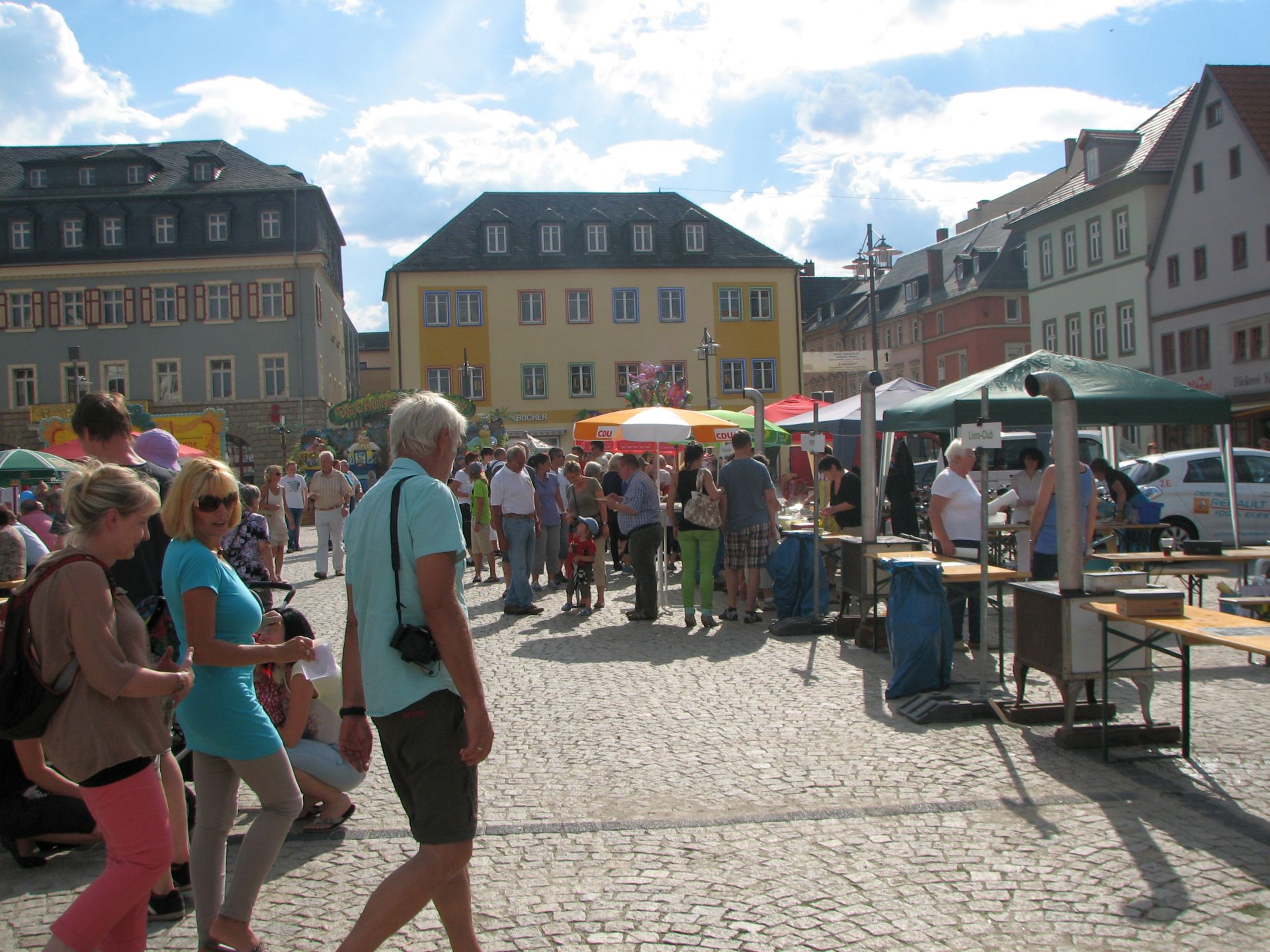 Insgesamt halte ich diese Aktionen für sinnvoller, als an normalen Markttagen Infostände aufzubauen. Die Leute waren nicht wie an Markttage in Eile, sondern hatten Zeit und Muße. Außerdem war der Besucherandrang des Festes sehr gut. Es war ein schöner Tag, Bilderbuchwetter und richtig was los auf dem Marktplatz.
