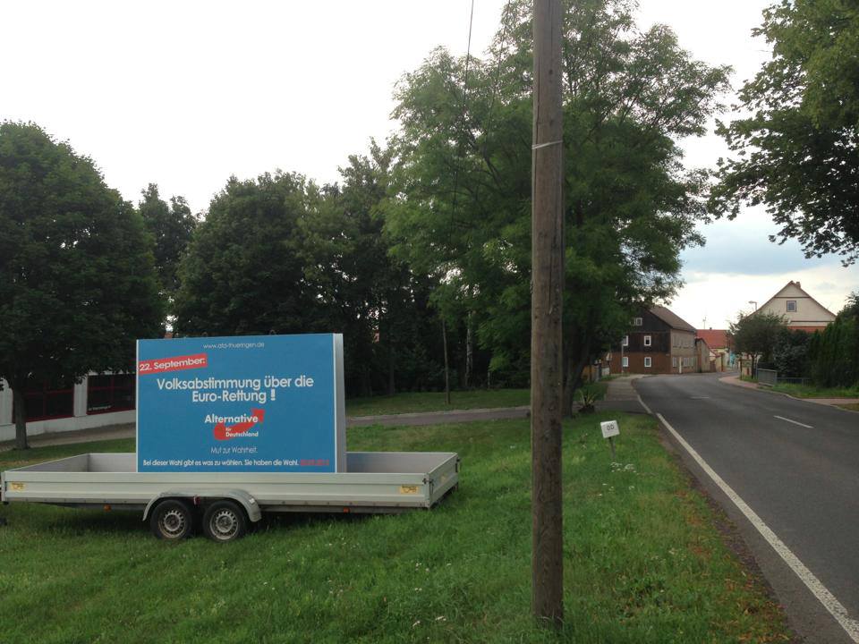Neben den Plakaten in üblicher A1-Größe setzen wir auf deutlich besser sichtbare Großplakate, wie beispielsweise ab heute ganz frisch in Erfurt und seit vergangener Woche als mobiler Anhänger im Raum Gotha und Ilmkreis.