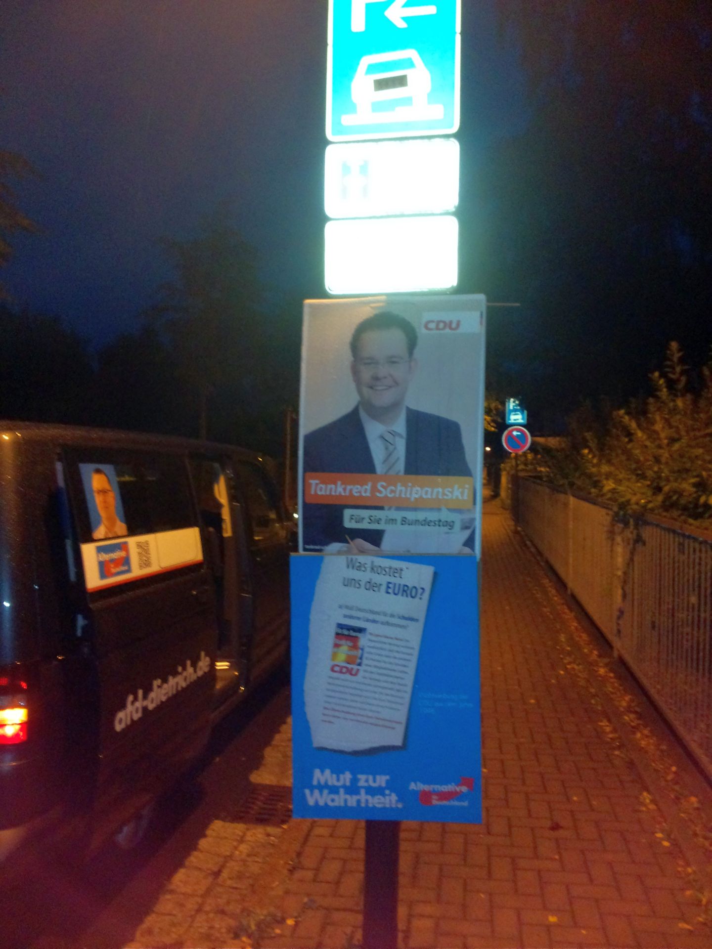 Wer sich noch kurzfristig zum spontanen (friedlichen!) Protest einfinden möchte (am besten im AfD-Shirt und mit hochhaltbarem Plakat) – einfach rechtzeitig an der Festhalle vorbeisehen und nach AfD’lern Ausschau halten!