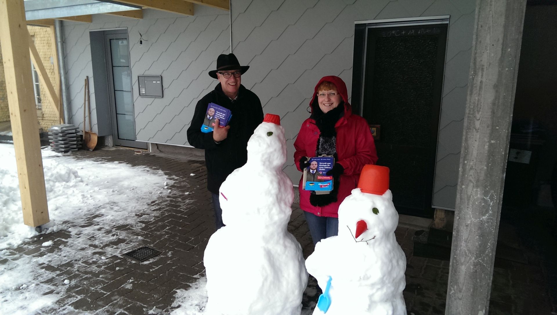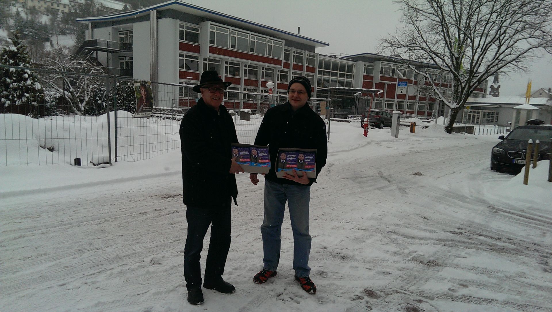 Pünktlich zu Beginn der Aktionen machte sich der für seine weißen Winter bekannte Schwarzwald alle Ehre und bot seinen Gästen die weiße Pracht frisch vom Himmel. Am Nachmittag dann leider übergehend zu Wasser, verstärkt durch starken Wind, kämpften die Wahlhelfer nicht nur für ein Maximalergebnis zur anstehenden Landtagswahl, sondern auch zunehmend mit dem Wetter. Aber bekanntlich gibt es ja kein schlechtes Wetter, sondern allenfalls schlechte Kleidung, zumal, wenn die AfD Botschaften im Freien an die Bürger überbringt.