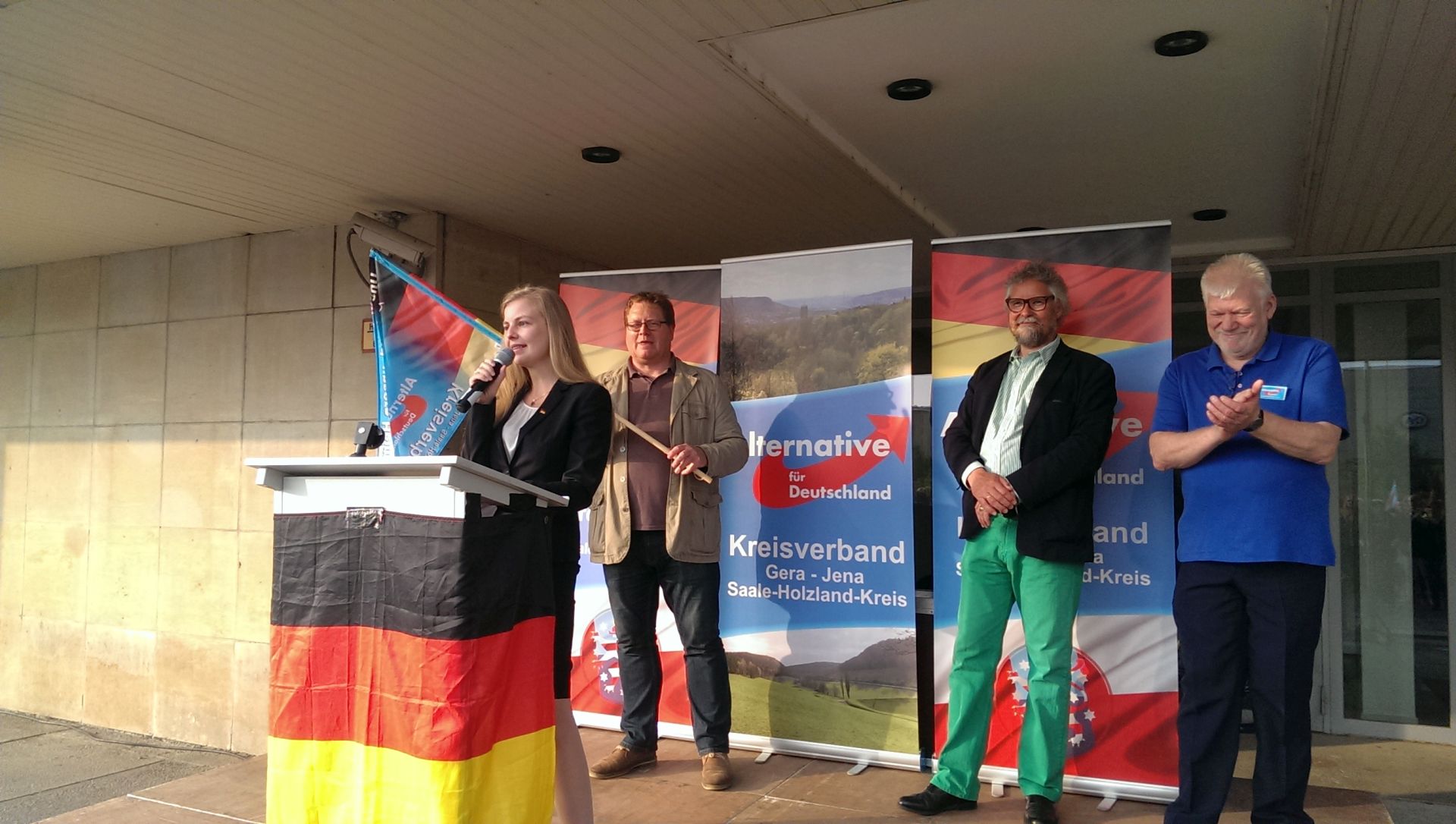 Bilder und Videos: AfD-Demo in Gera am 27.05.2016 2016-05-28T14:25:13+02:0028. Mai 2016|AfD Thüringen, Demoblog| Diesen Beitrag verbreiten FacebookXWhatsAppE-Mail Ähnliche Beiträge Weihnachtsgrüße der AfD-Thüringen Gallerie Weihnachtsgrüße der AfD-Thüringen Wir sind Wahlsieger! DANKE Thüringen! Gallerie Wir sind Wahlsieger! DANKE Thüringen! Abschlusskundgebung zur Landtagswahl 2024 Gallerie Abschlusskundgebung zur Landtagswahl 2024 Weihnachtsgruß der AfD-Thüringen Gallerie Weihnachtsgruß der AfD-Thüringen Weihnachtsgrüße Gallerie Weihnachtsgrüße