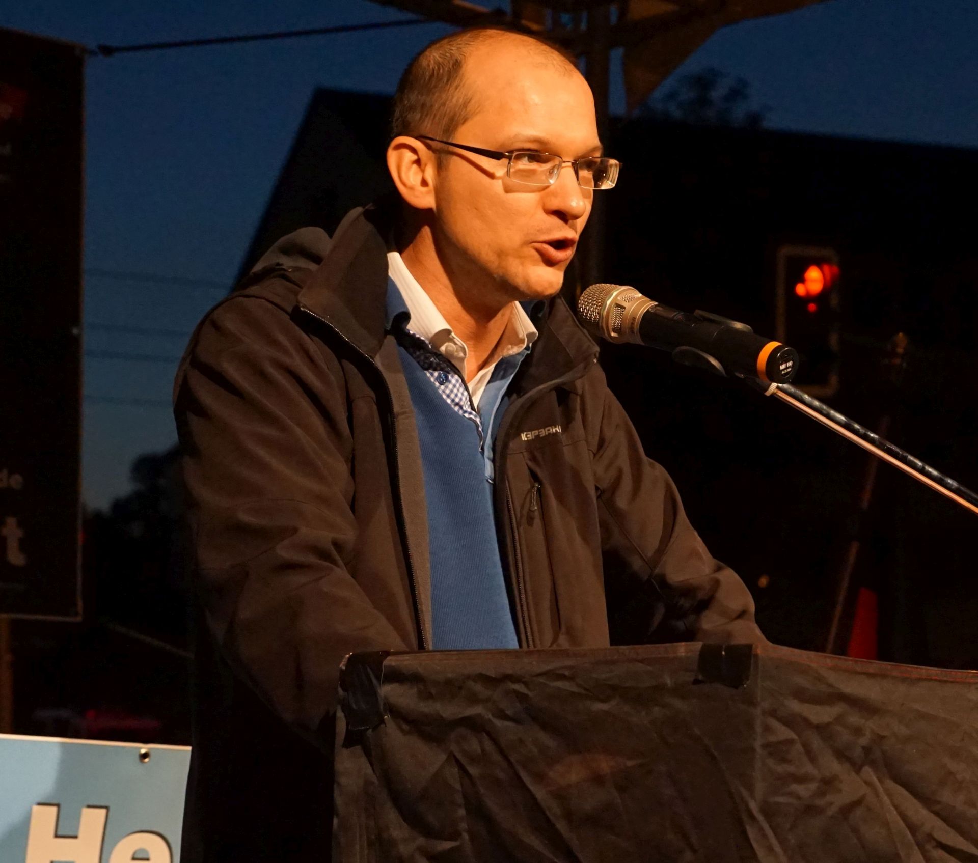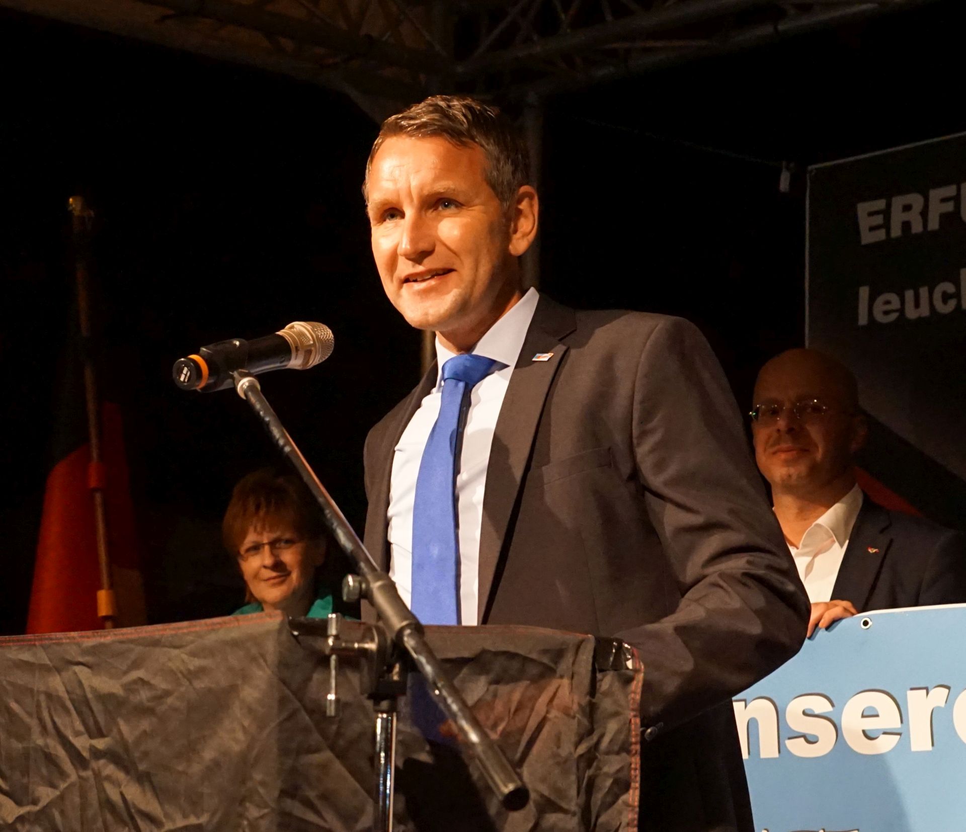 Der AfD-Landessprecher und Vorsitzende der Thüringer Landtagsfraktion Björn Höcke, der als letzter Redner des Abends das Wort ergriff, unterstrich die gute Zusammenarbeit der AfD-Landesverbände: „Wir vier werden nicht ruhen, und das ist das Versprechen, das wir Euch heute geben, bis die Politik in diesem Land um 180 Grad gewendet ist und etwas praktiziert wird, das in jedem anderen Land der Welt eine Selbstverständlichkeit ist – nämlich eine Politik nicht gegen das eigene Volk, sondern für das eigene Volk!“ Zur Gewährleistung der Sicherheit sagte Höcke: „Sichert endlich die Grenzen und schickt die Millionen illegaler Einwanderer nach Hause.“ Mit einer kleinen Anfrage habe man herausbekommen, daß die Polizei jeden Monat über 200 Einsätze in und um die Asylbewerberheime in Thüringen fahren muß. Hinzu kommt, dass der Verfassungsschutzchef Stephan Kramer auf Druck der AfD eingestehen mußte, wonach sich 140 Islamisten und 75 Salafisten und einem „beachtlichen Gefährdungspotential“ in Thüringen aufhalten.