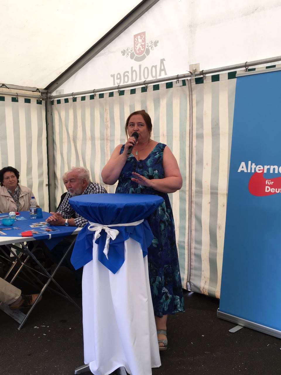Während inzwischen der Grill auf Betriebstemperatur gebracht wurde, um uns mit weiteren leckeren Sachen zu verwöhnen, berichtete uns MdL Corinna Herold von ihrer Arbeit in der Härtefallkommission im Thüringer Landtag. Rüdiger Schmitt, Urgestein der AfD aus dem Kreisverband Ilmkreis-Gotha, rezitierte ein Gedicht von Nadine Hoffmann, Mitglied im Thüringer Landesvorstand und zuständig für die Pressearbeit. Alle bekamen viel Applaus, die Stimmung unter den Sommerfestgästen war ausgezeichnet, trotz inzwischen zugezogenen Himmels.