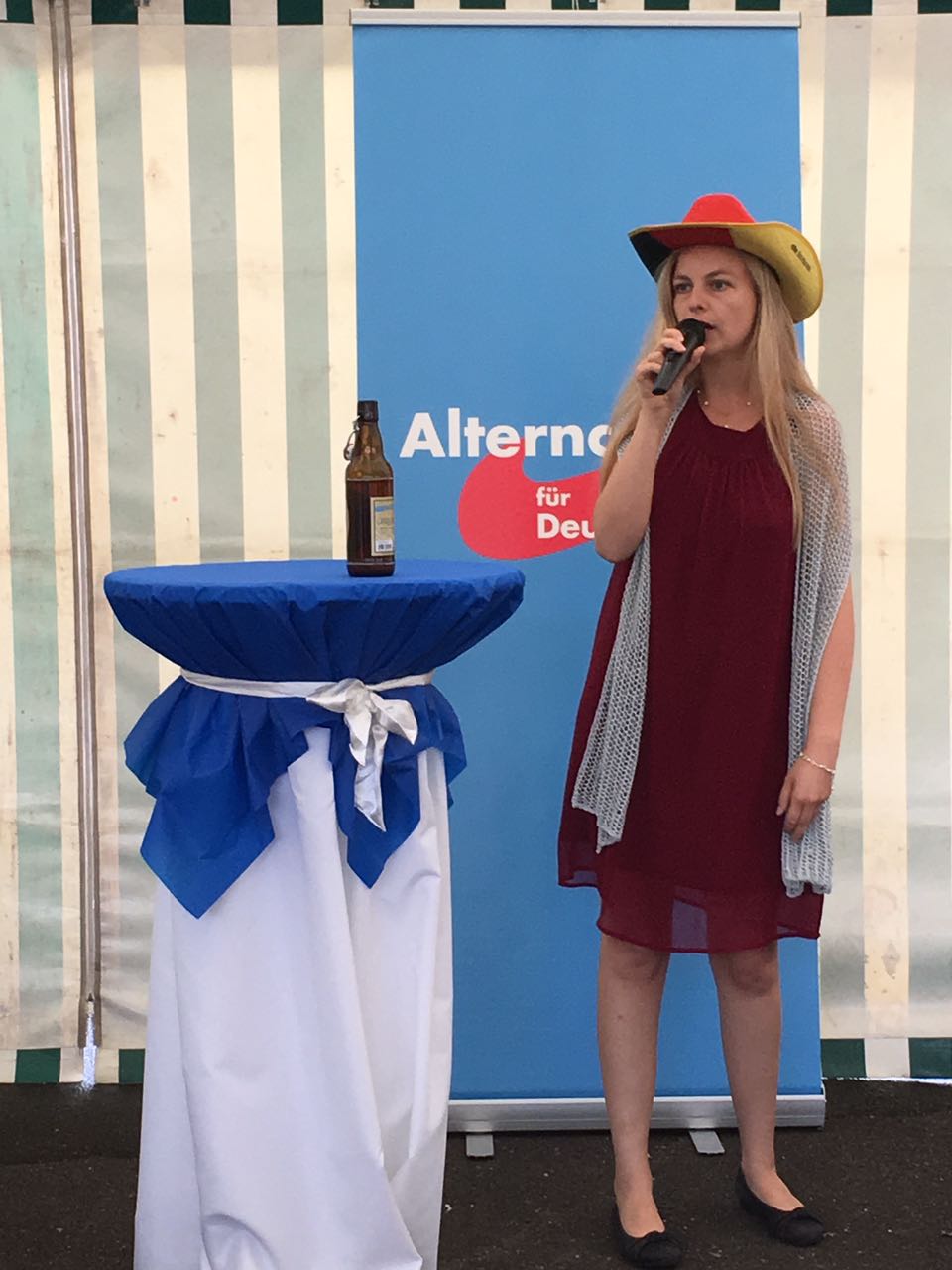 Für Spaß und Klamauk sorgte Frank Wunderlich, verkleidet als Putzfrau „Schrubberwally“, mit Witzen und einer Gesangseinlage. Und die kleine Arya, Tochter des Direktkandidaten Uwe Gewiese, trug uns in zuckersüßer Weise ein wirklich langes Gedicht vor.