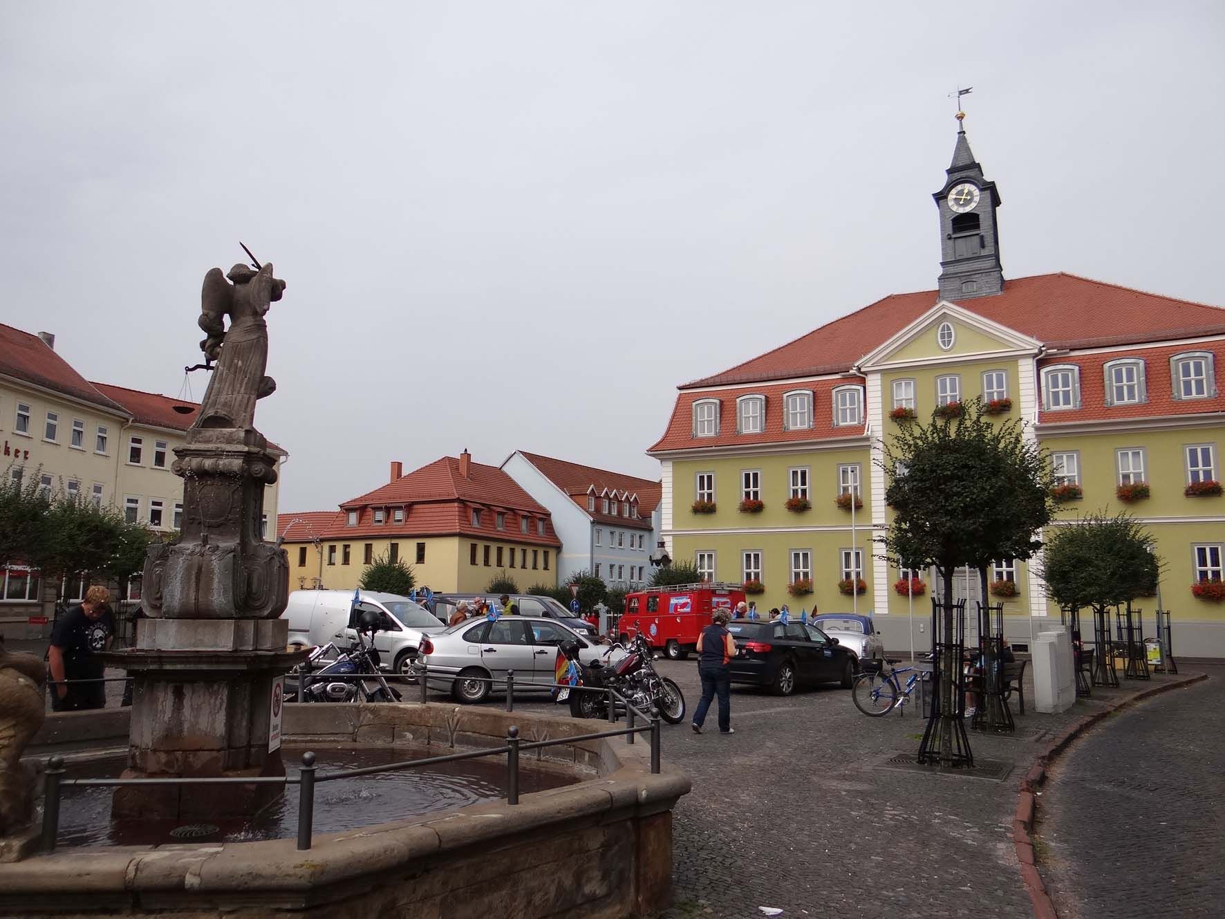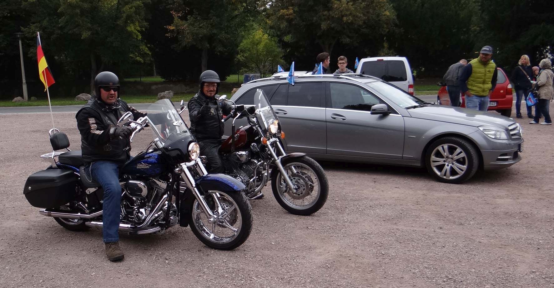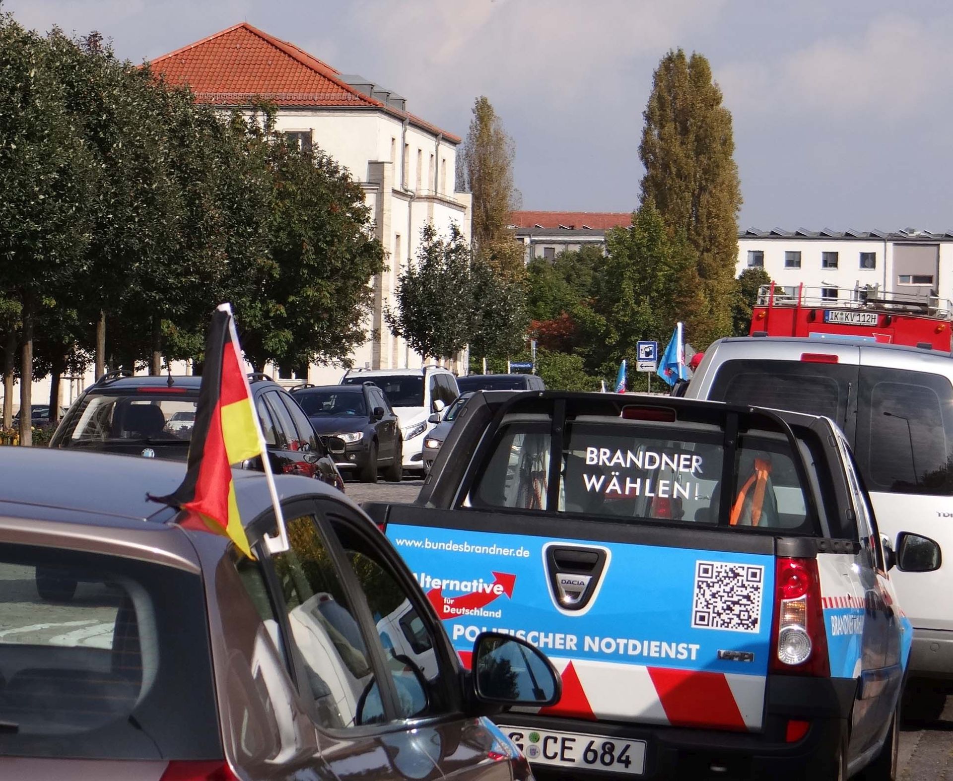 ARNSTADT, 23. September. Hammerecke am Wollmarktsplatz. Es ist 9.30 Uhr, als die ersten Fahrzeuge für die letzte Aktion vor der Bundestagswahl auf den traditionsreichen Platz nahe des alten Fischtores der Kreisstadt Aufmerksamkeit bei vorüberfahrenden Fahrzeugen erzeugen. Die rote „Landrettungsfeuerwehr“, gesteuert von Rüdiger Schmitt, ist einfach ein Hingucker. Einer nach dem anderen Teilnehmer rollt mit seinem Fahrzeug auf den Platz. Es ist Samstag und nur noch wenige Stunden trennen Deutschland von der historischsten Wahl seit der Wiedervereinigung oder der Vereinnahmung, wie manche sagen. Das Jahr 2017 steuert merklich auf den gesellschaftlichen Höhepunkt zu. Im Kreisverband Ilmkreis-Gotha wurde diese Fahrt in den Herbst kurz entschlossen organisiert.