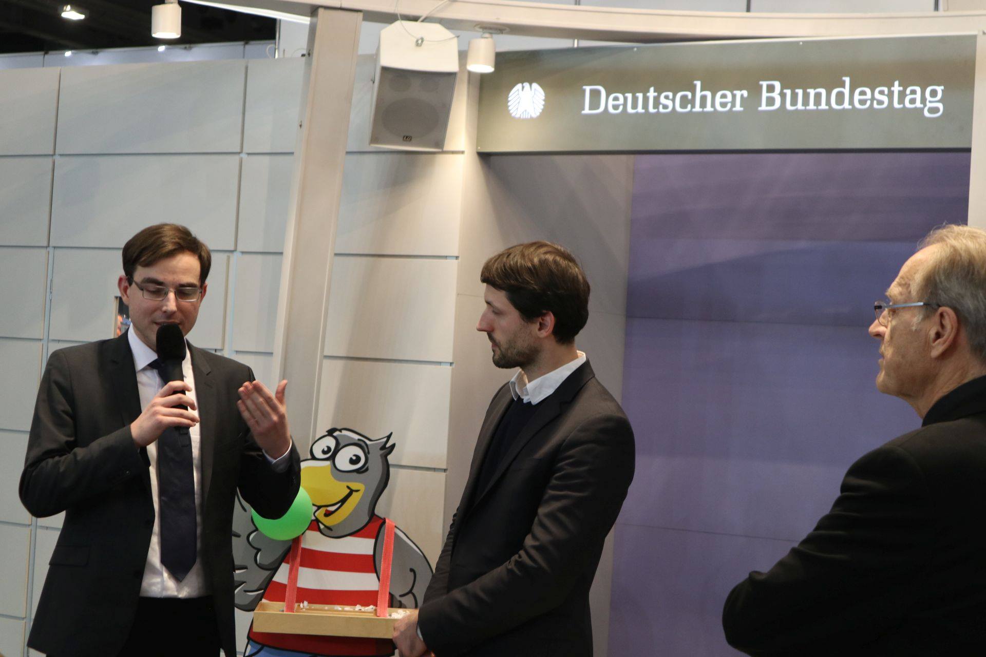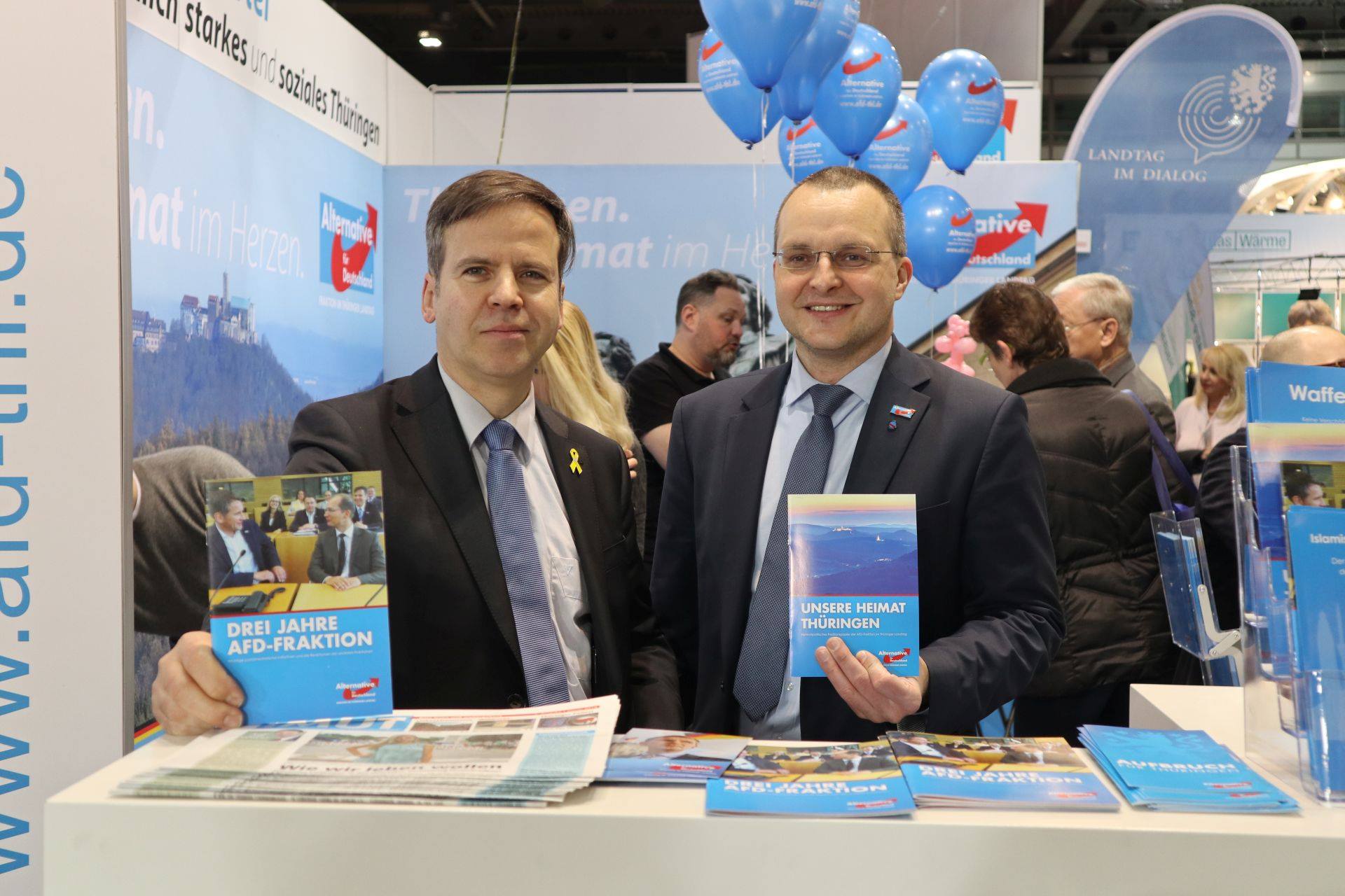 Nach dem etwa zweistündigen Besuch der Ausstellung standen alle drei Bundestagsabgeordneten gemeinsam mit den Thüringer Landtagsabgeordneten Jörg Henke und Olaf Kießling am Infostand der Landtagsfraktion für Bürgergespräche zur Verfügung. Der Infostand wurde sehr rege besucht. Im Rahmen von Interviews berichteten sie außerdem am Stand des Deutschen Bundestages über die Arbeit der Bundestagsfraktion der AfD.