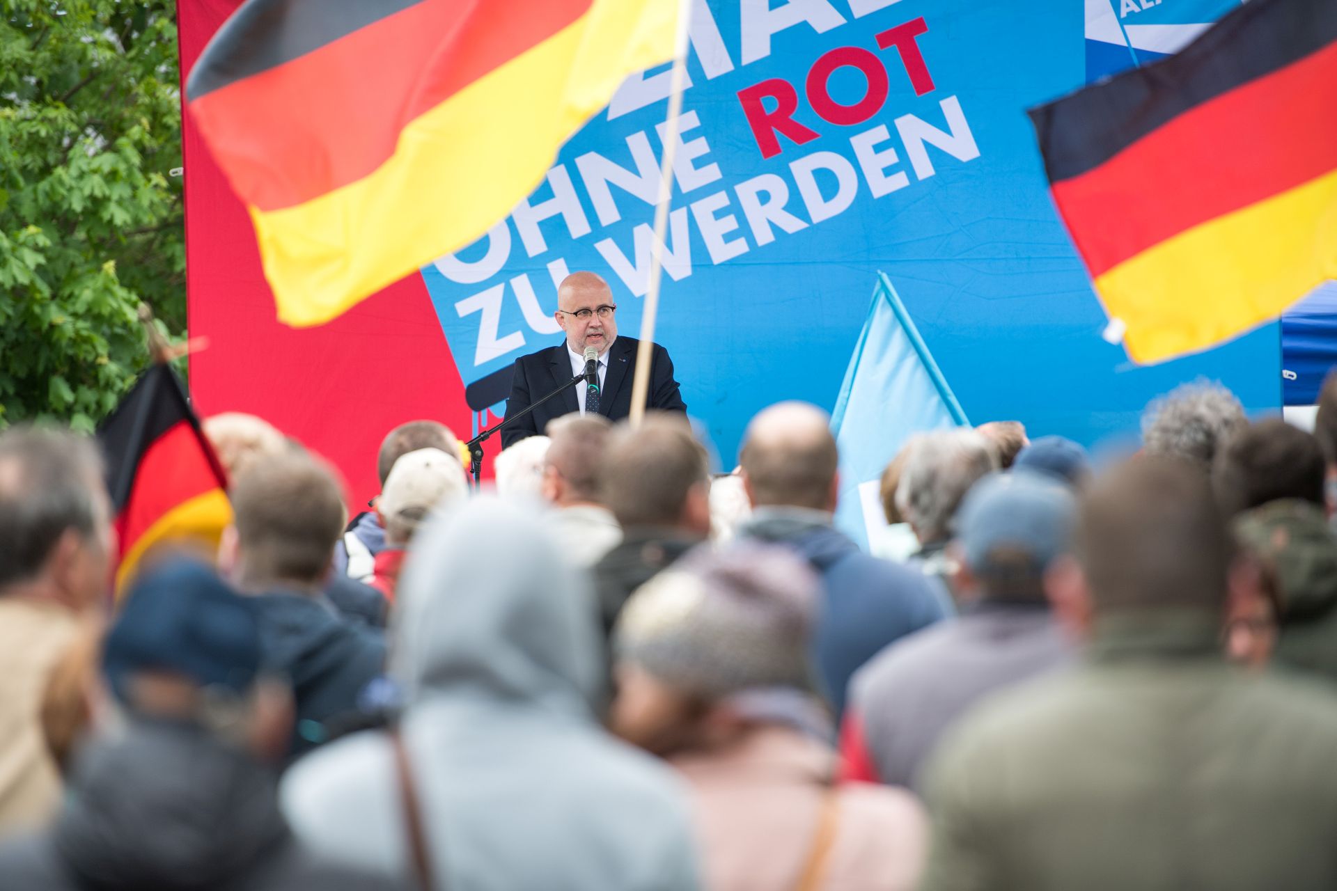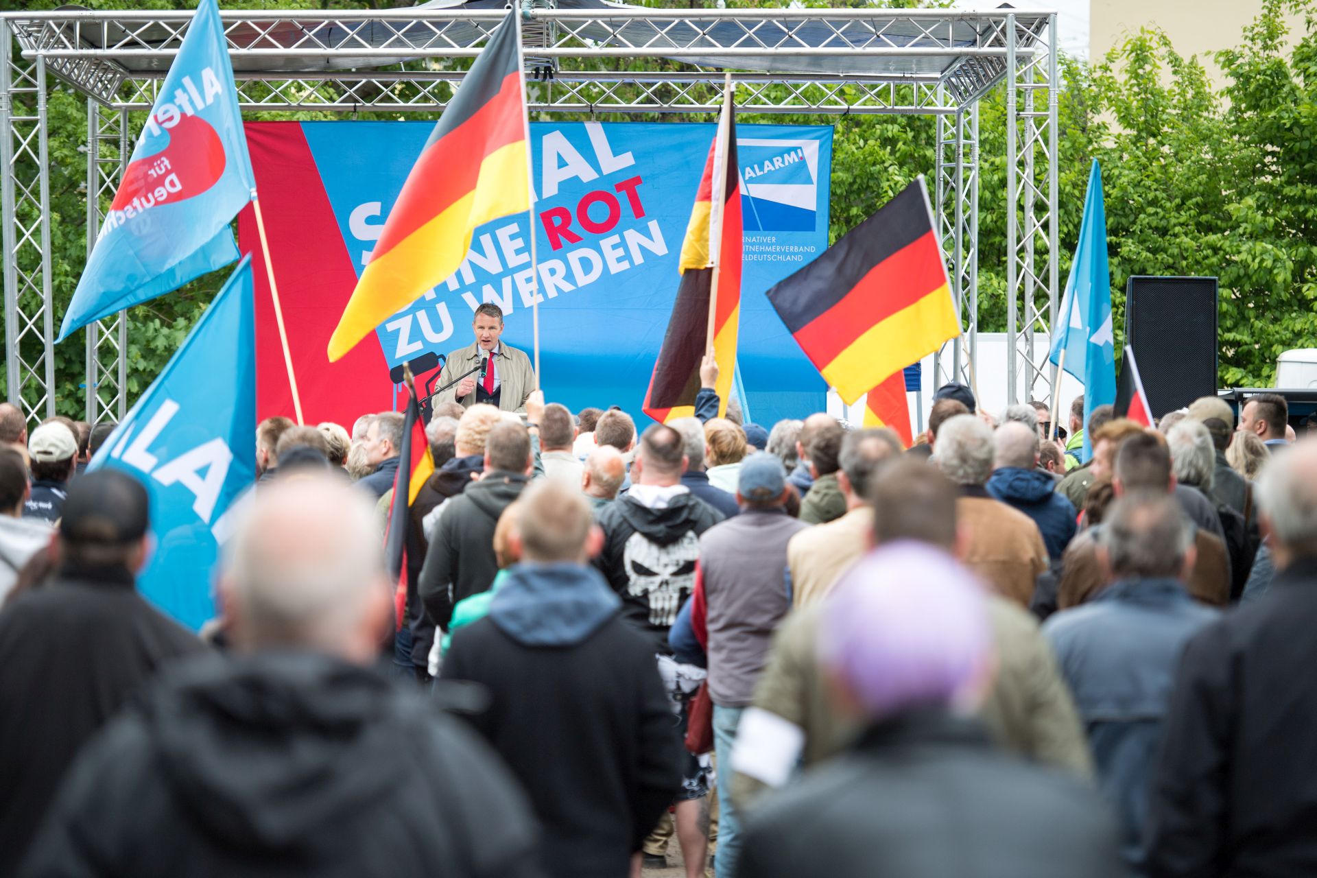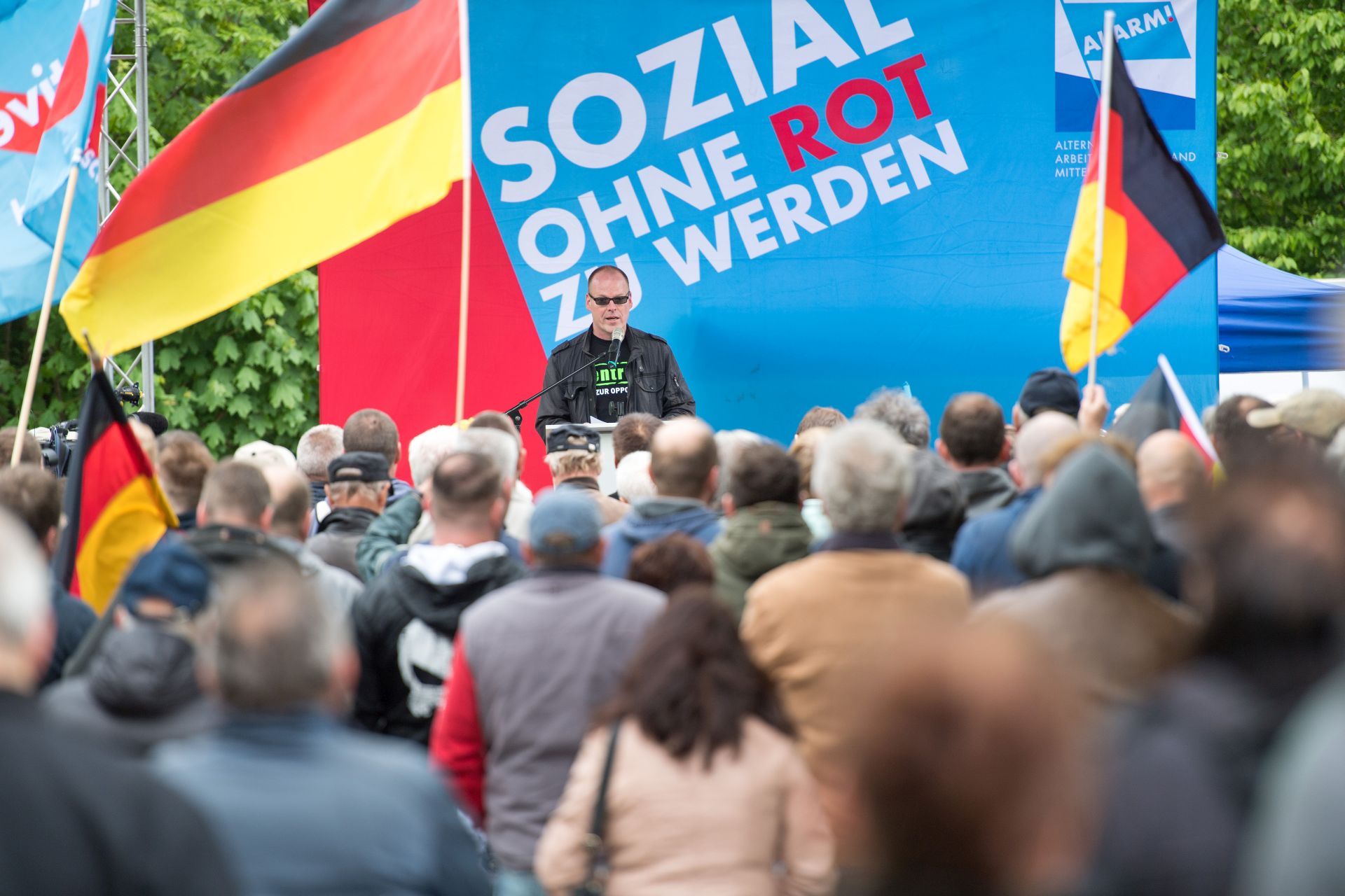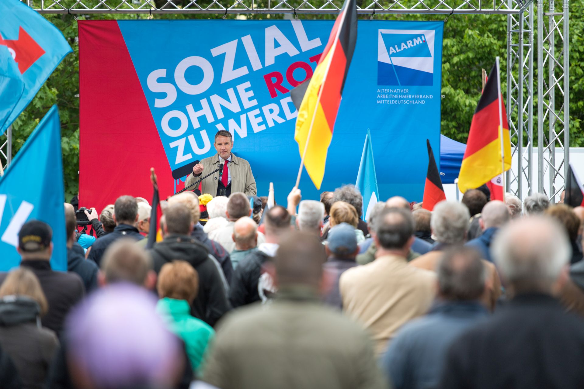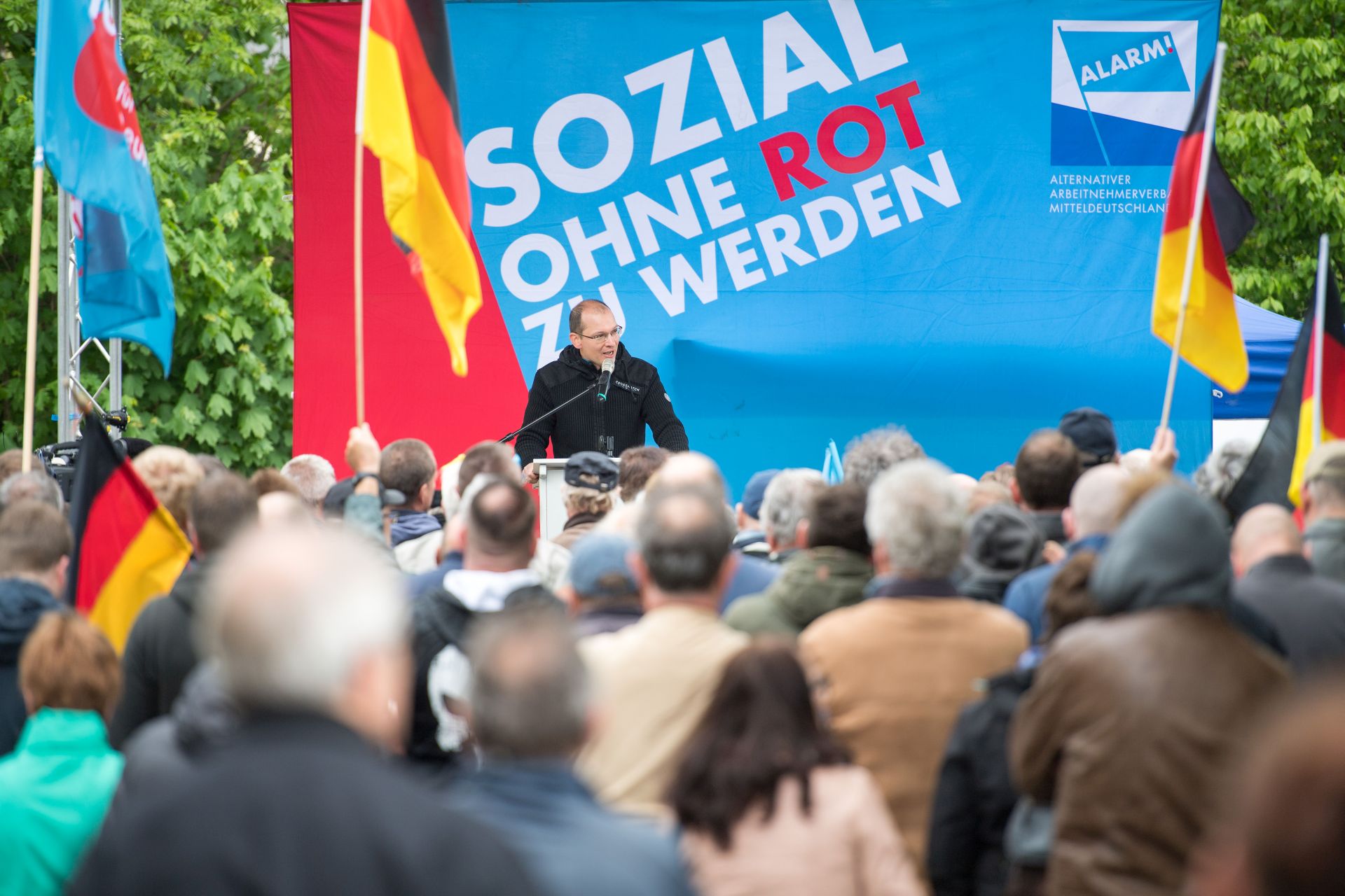 Als erster Redner sprach der Landessprecher der AfD Thüringen und Fraktionsvorsitzende im Thüringer Landtag Björn Höcke über die sozialpolitischen Ziele der AfD und forderte eine europaweite Lösung für den PSA-Konzern, bei dem nicht die Arbeitnehmer eines europäischen Landes gegen die eines anderen Landes der EU ausgespielt werden.